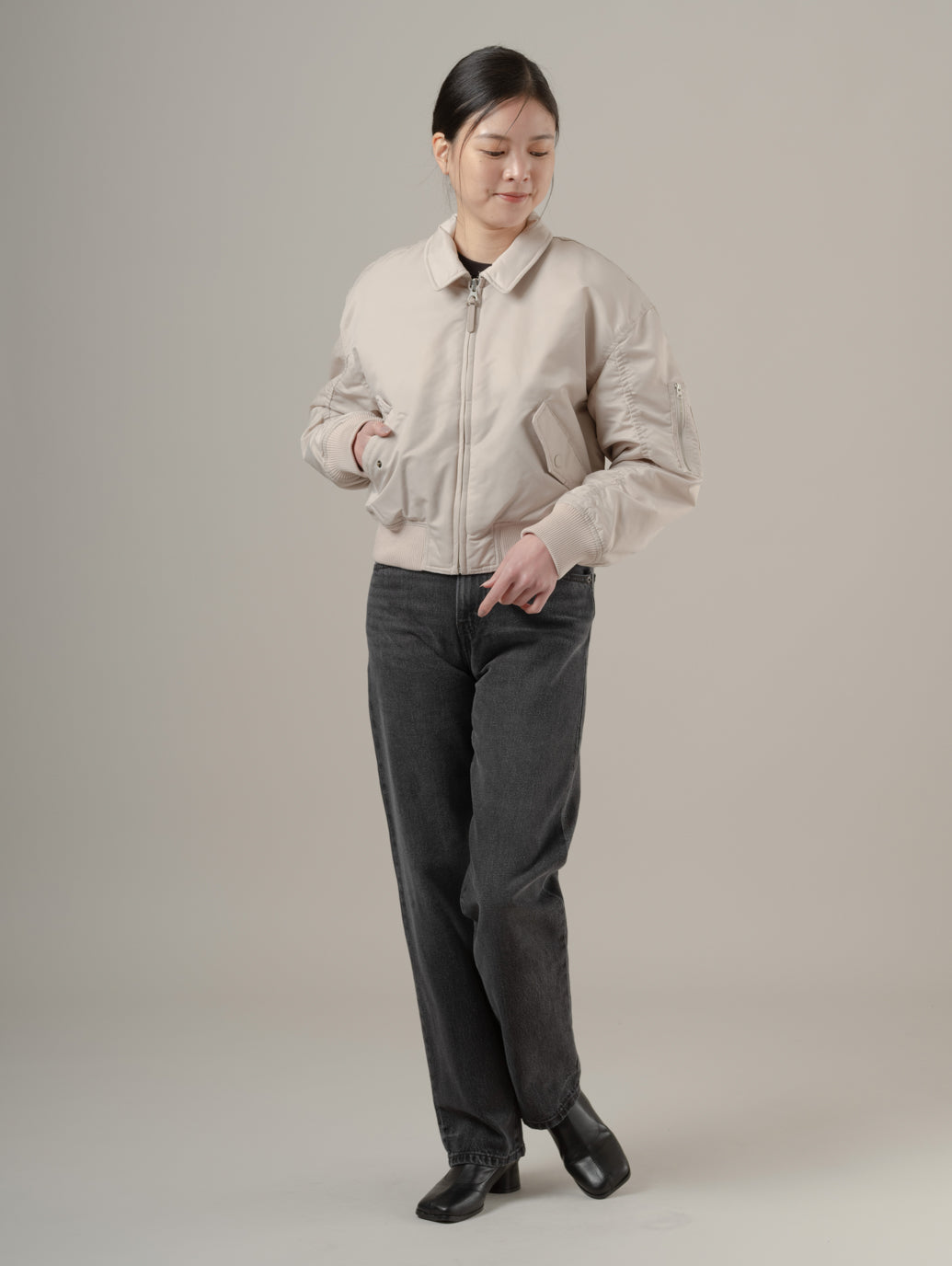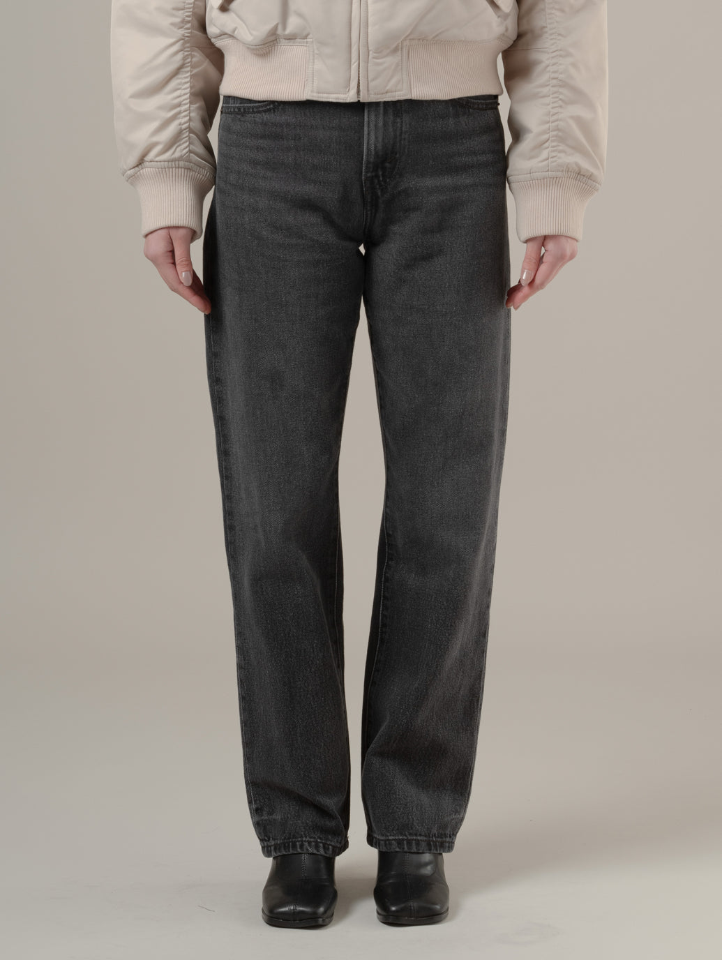 気負わず履ける、毎日の定番。 イージーダッドジーンズは、ハイライズで脚をきれいに見せながら、 ほどよくゆとりのあるストレートシルエットが魅力です。