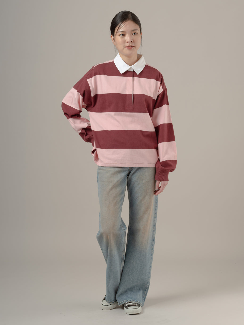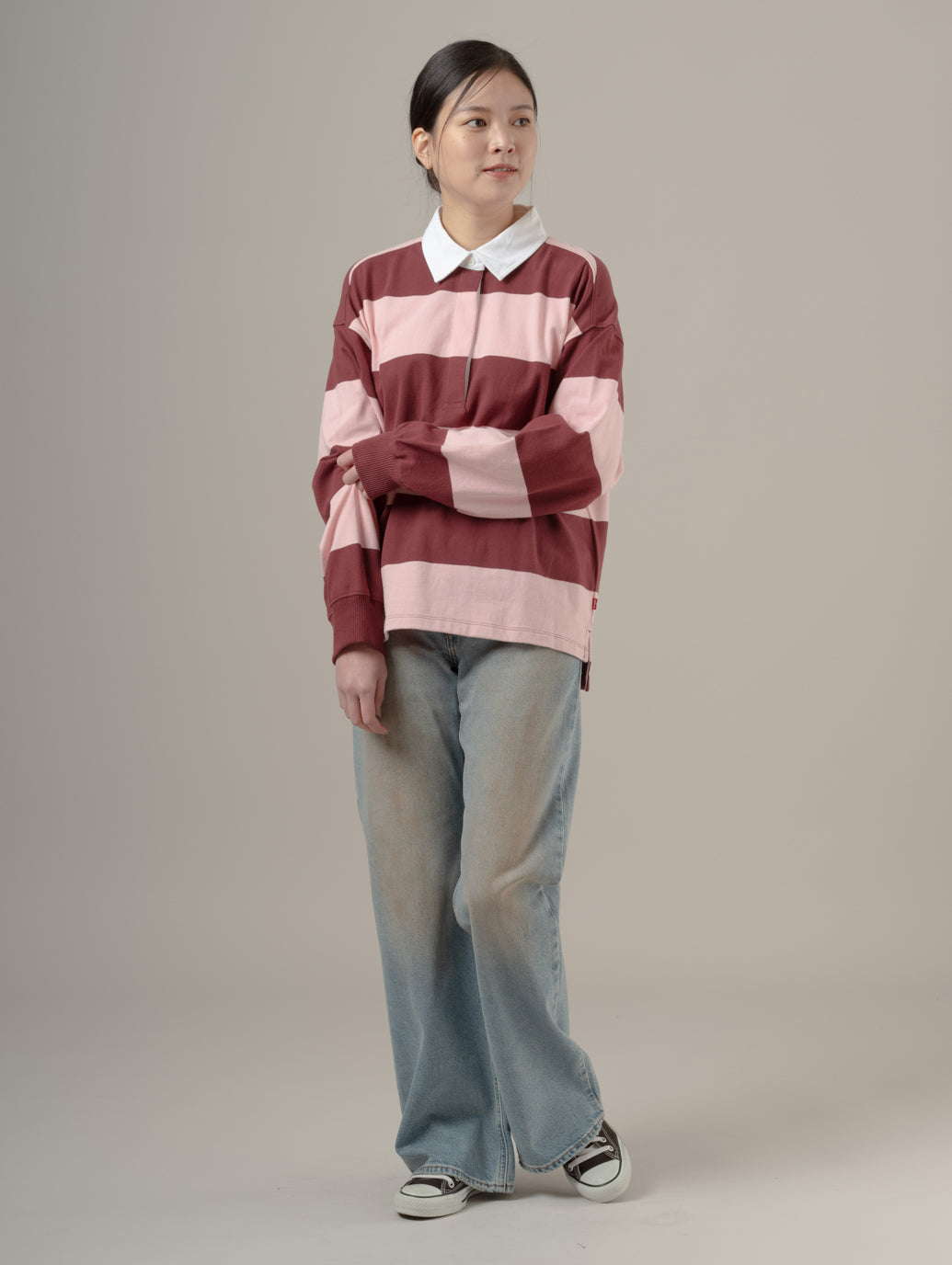 ルーズブーツジーンズは、定番のブーツカットをもっと 気軽に穿けるようにしたジーンズ。ほどよくゆったりしたルーズフィット、ウエスト位置が自然なミッドライズ model:167cm B74 W61 H88 着用サイズ:26inch
