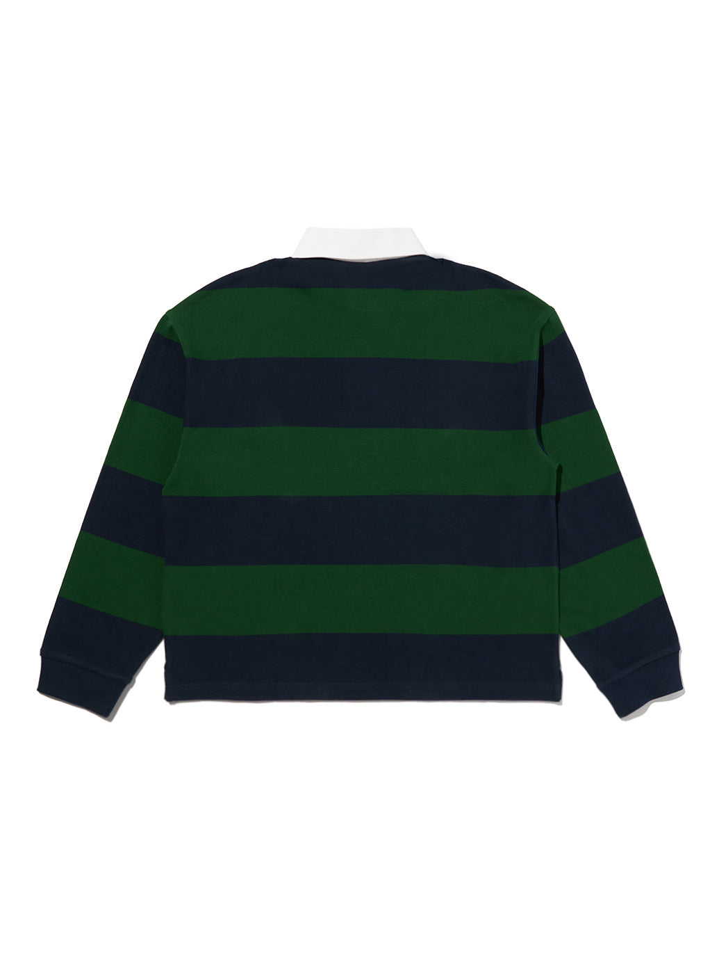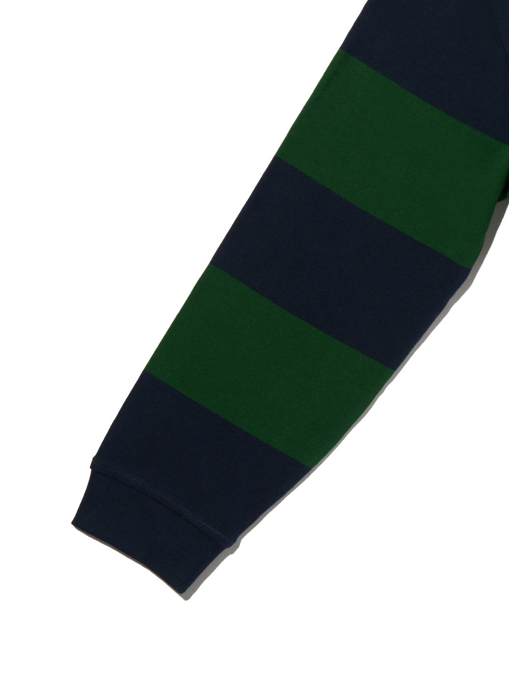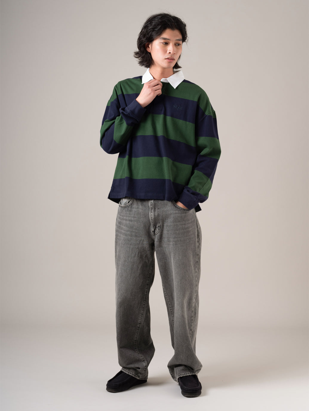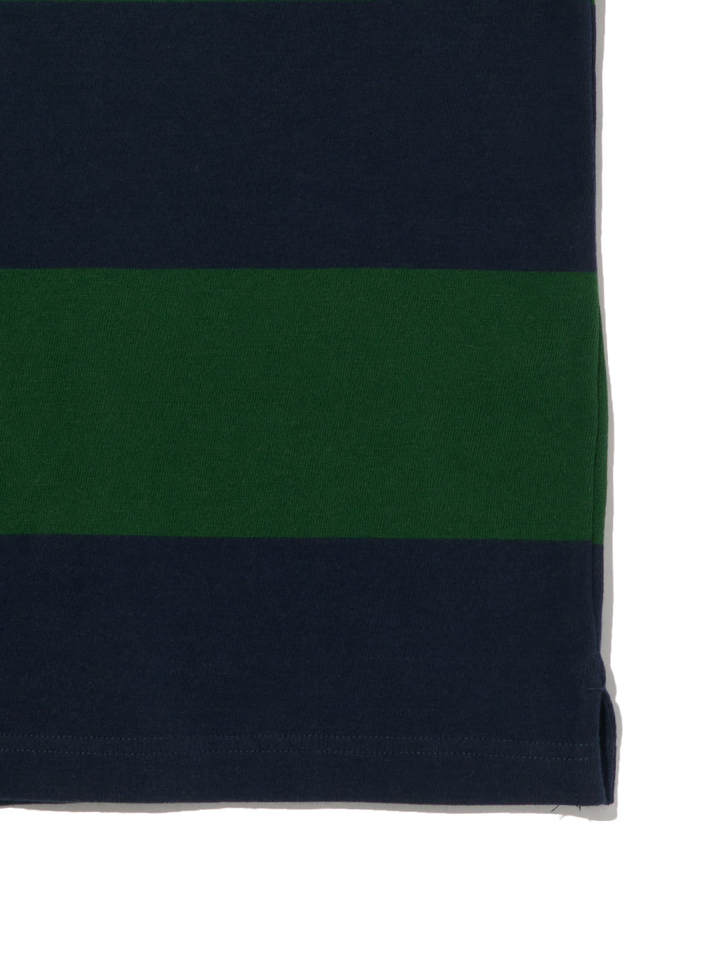 リーバイスでも人気のアイテムでもあるラグビーシャツから新しいアイテムが登場。ボタンダウンで程よいルーズフィット、そしてお馴染みのクラシックなネイビーとグリーンのストライプ。胸には同色でツーホースの刺繍があしらわれたデザインです。 model:177cm B83 W73 H82 着用サイズ:L