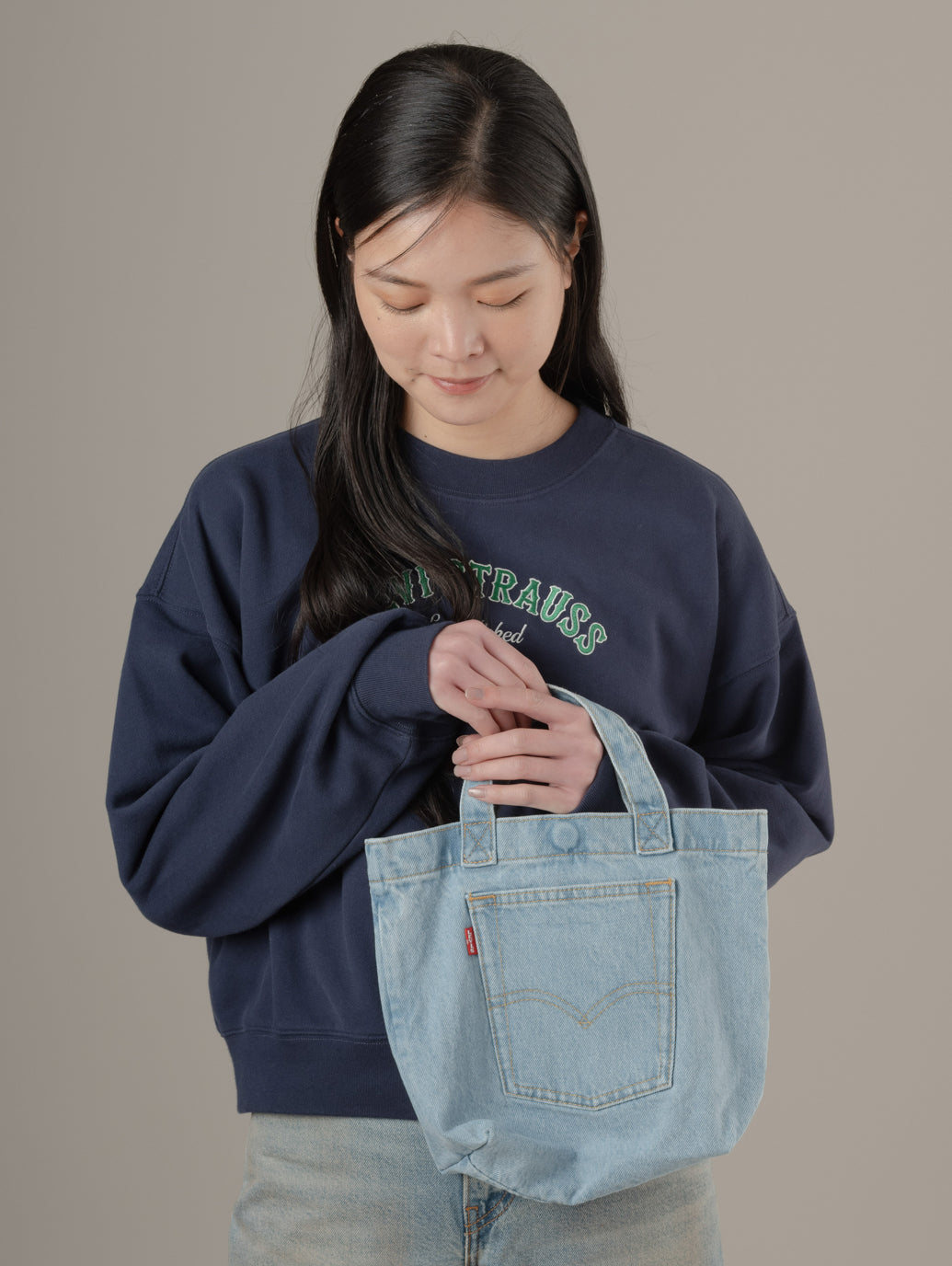 デニムミニトートバッグは、毎日使う度々に経年変化を楽しめるアイテムです。どこへでも持ち運べるほどスタイリッシュなデザインです。