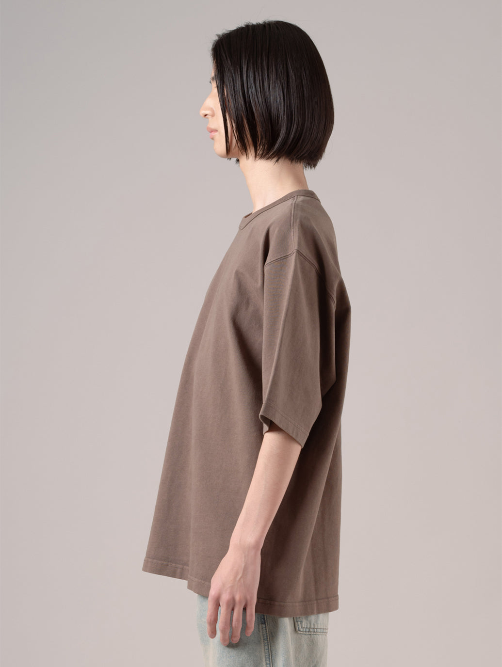 シンプルなデザインと柔らかい素材を使った最高のマストアイテム。ブラウンカラーでルーズシルエット。お気に入りのパンツと合わせていただきたいアイテムです。 model:181cm B81 W65 H85 着用サイズ:L