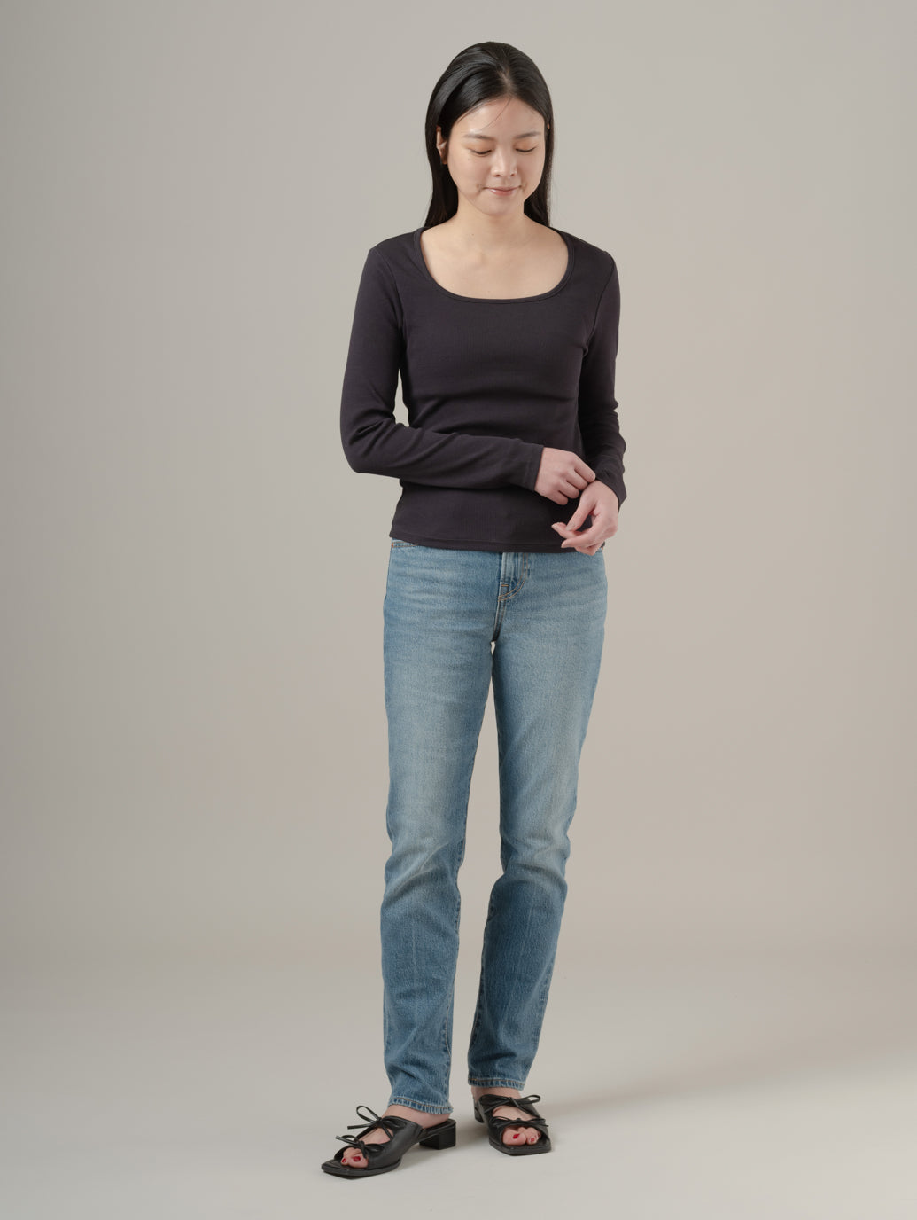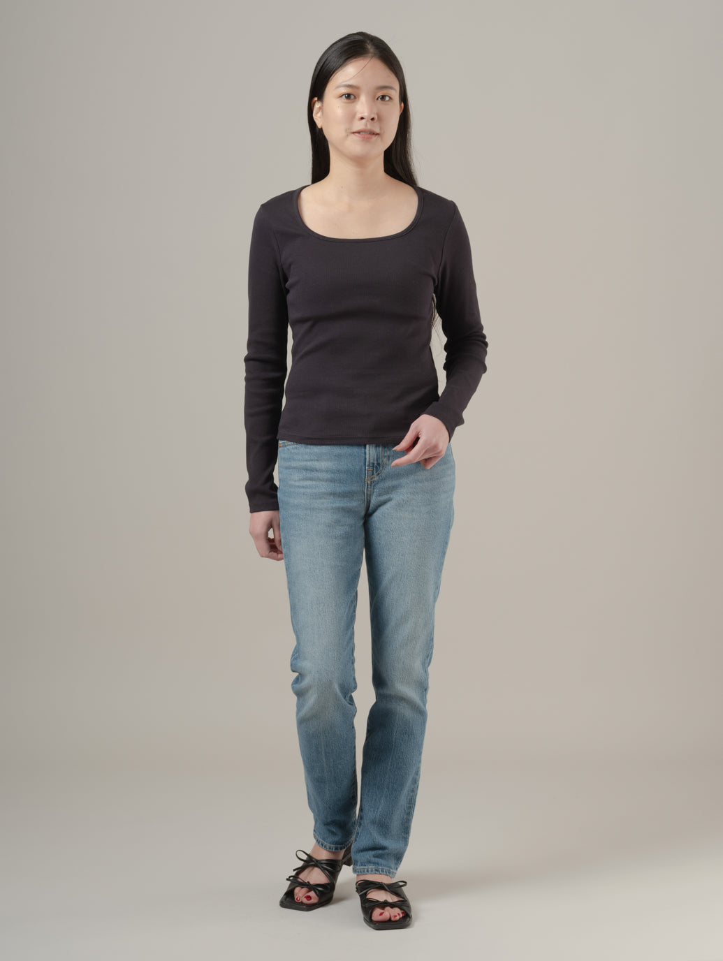 エッセンシャル スクエアネック ロングスリーブ Tシャツ