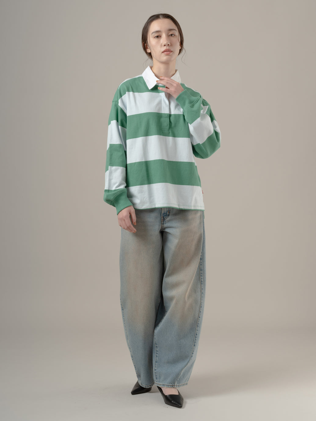 クラシックなラグビーシャツがLevi's®のアップデートして登場。クラシックな襟、ゆったりとしたフィット感でストライプが特徴。 綿100%のしっかりとした生地感なのでこれからの時期に大活躍するアイテムです。 model:168cm B80 W63 H92 着用サイズ:S