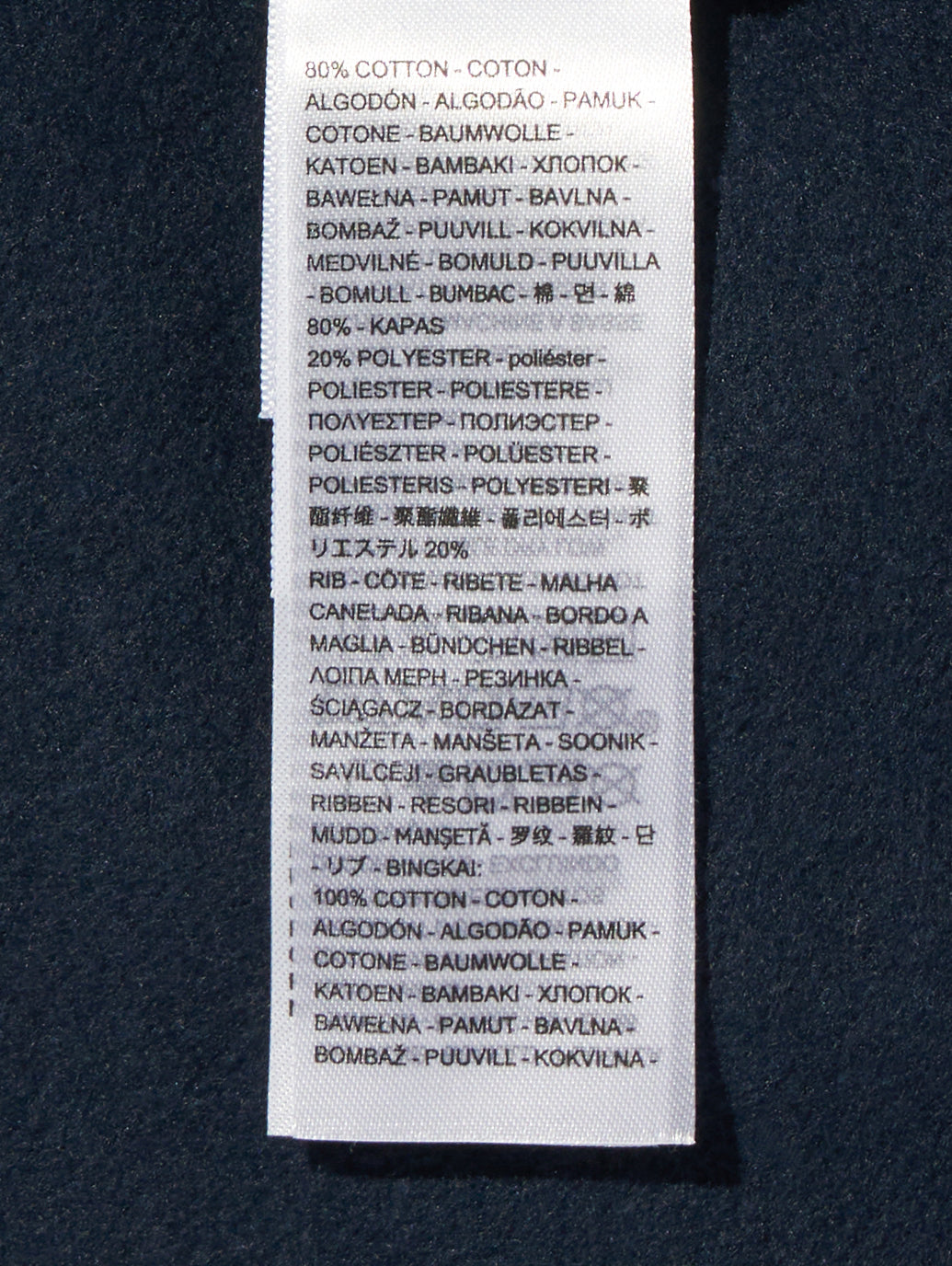 ・綿80%,ポリエステル20%, リブ部分:綿100%