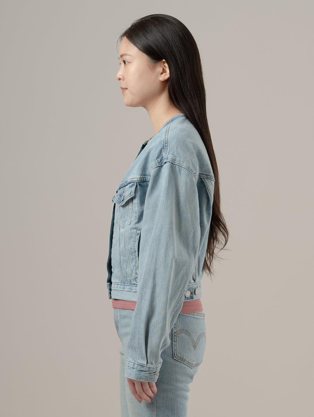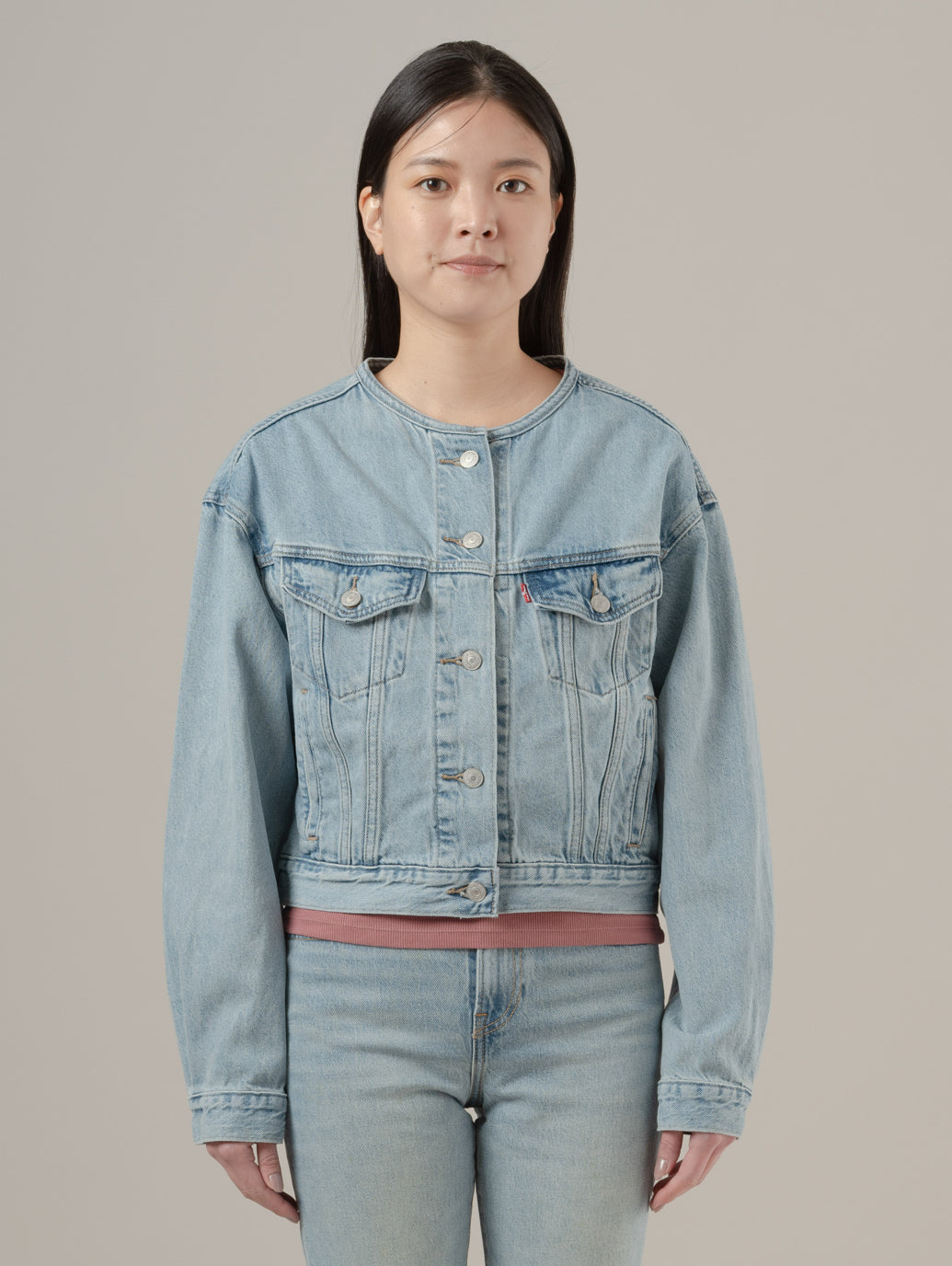 Levi's®の定番アイテムであるトラッカージャケット。ボディのベースは全体的にゆとりのあるシルエットであるものの、襟もノーカラー仕様にして、抜け感とメリハリを上手く落とし込んだ拘りの詰まった一着です。 model:167cm B74 W61 H88 着用サイズ:S