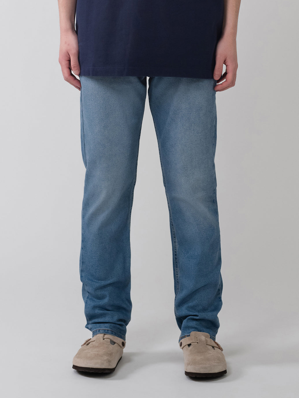リーバイス®のベーシックシルエットの一つで、ストレートとスキニーの中間に位置するスタンダードなスリムフィット。ストレッチ入りで伸縮性のある生地、浅めの股上なので、股下から裾にかけてきれいなシルエットが出やすいのが特徴です。スリムなシルエットながら綿79%にポリウレタン1%、ポリエステル19%を配合しているので、耐久性は勿論、伸縮性や速乾性に優れています。爽やかなライトカラーなので春先にもお勧めの一本です。