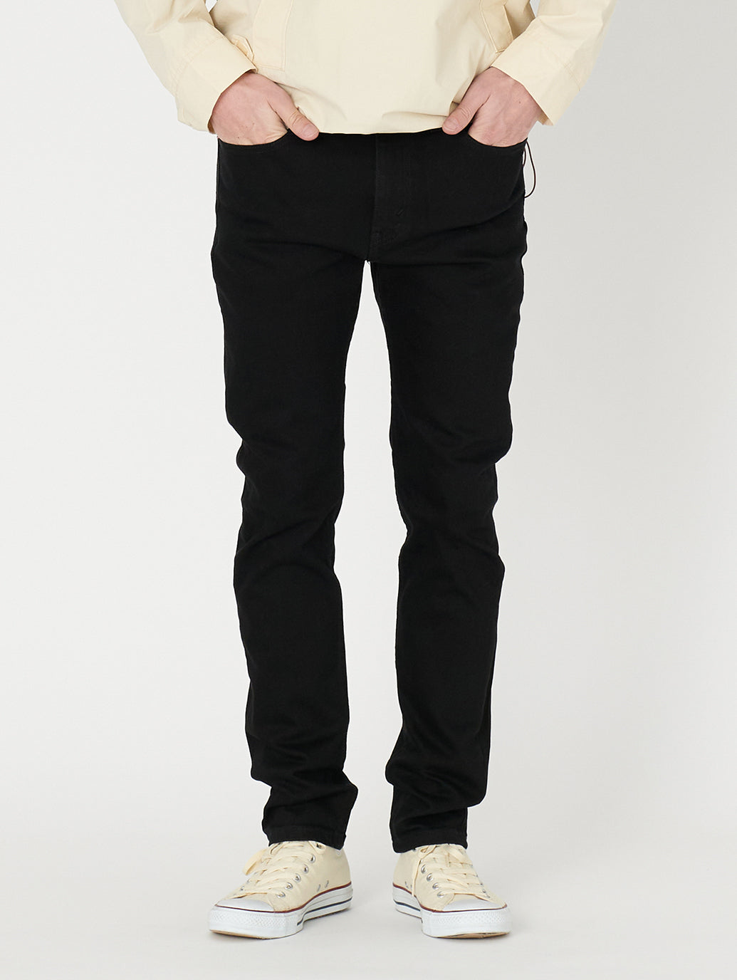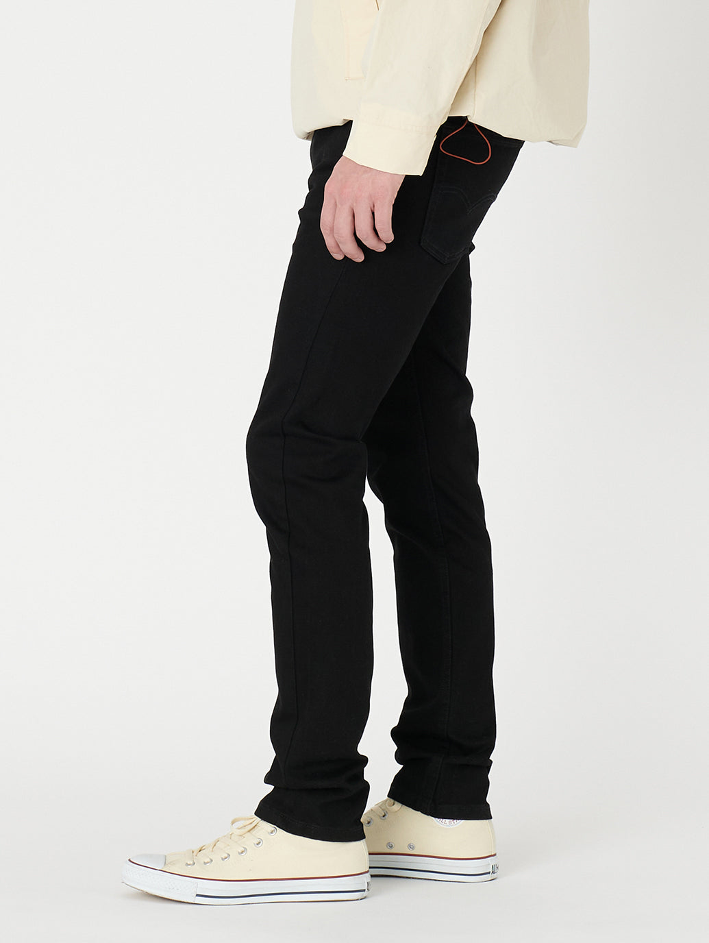 リーバイスのベーシックシルエットの一つ。長いい間愛される一本。2010年にLevi’s®により最先端のフィットとして誕生した510™ Skinny。ジップフライのストレッチ入り。股上は程よい深さでヒップから裾回りにかけて最もスリムなジーンズ。トレンドのハイテクスニーカーと合わせるならスッキリ穿くよりもゆるぼた感を出して、スニーカーのボリュームとのバランスを加味して裾上げ無し、又は3-5cmほどの裾上げがお勧め。革靴で合わせる場合は、ダボつきにより、裾部分に膨らみが出てしまうとシルエットが崩れてしまうので、1-2クッション出るぐらいの長さに調整するとスッキリとした印象を与えてくれます!ロールアップをされる方にはその分を余分に長さを残すことがオススメです。オーバーサイズでサイズ選びをするよりもジャストサイズでお選び頂くのがお勧めです。