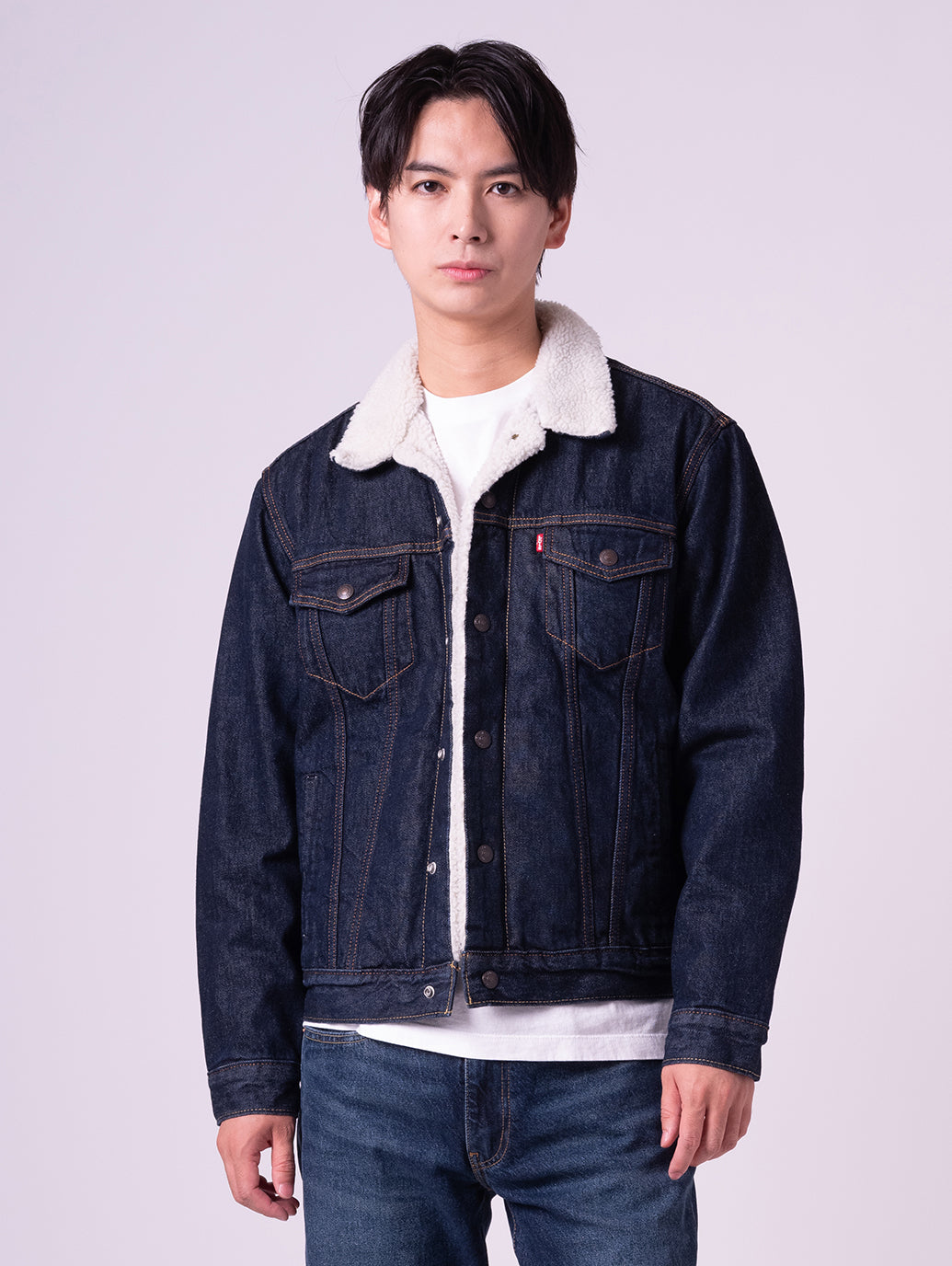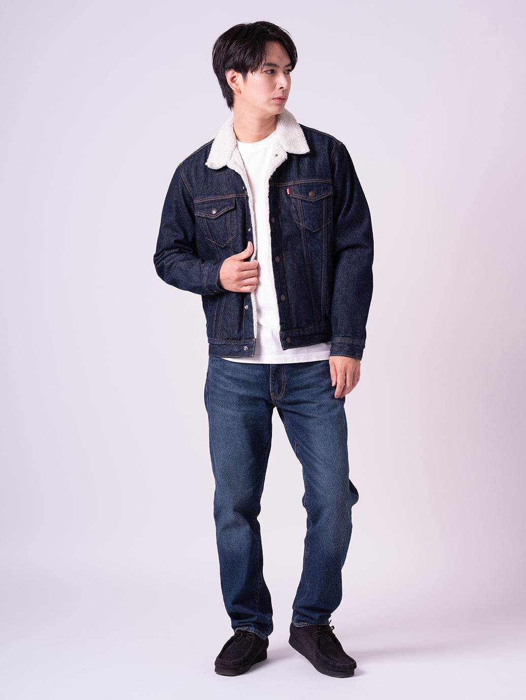 1967年から続くLevi’s®の定番アイテムの一つであるトラッカージャケットのより快適なバージョン、TYPEⅢシェルパ・トラッカージャケット。耐久性のあるデニムを使用し、裏地にはふわふわのシェルパをあしらい、保温性を高めています。