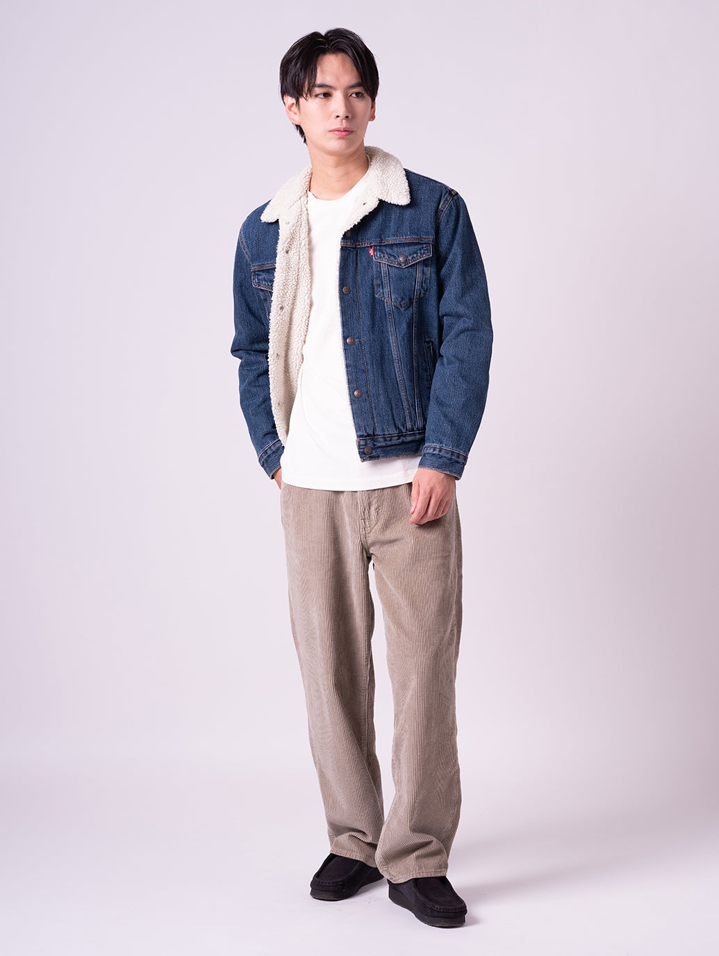 1967年から続くLevi’s®の定番アイテムの一つであるトラッカージャケットのより快適なバージョン、TYPEⅢシェルパ・トラッカージャケット。耐久性のあるデニムを使用し、裏地にはふわふわのシェルパをあしらい、保温性を高めています。