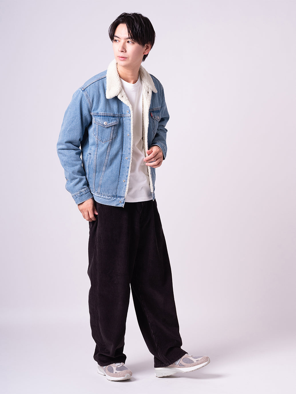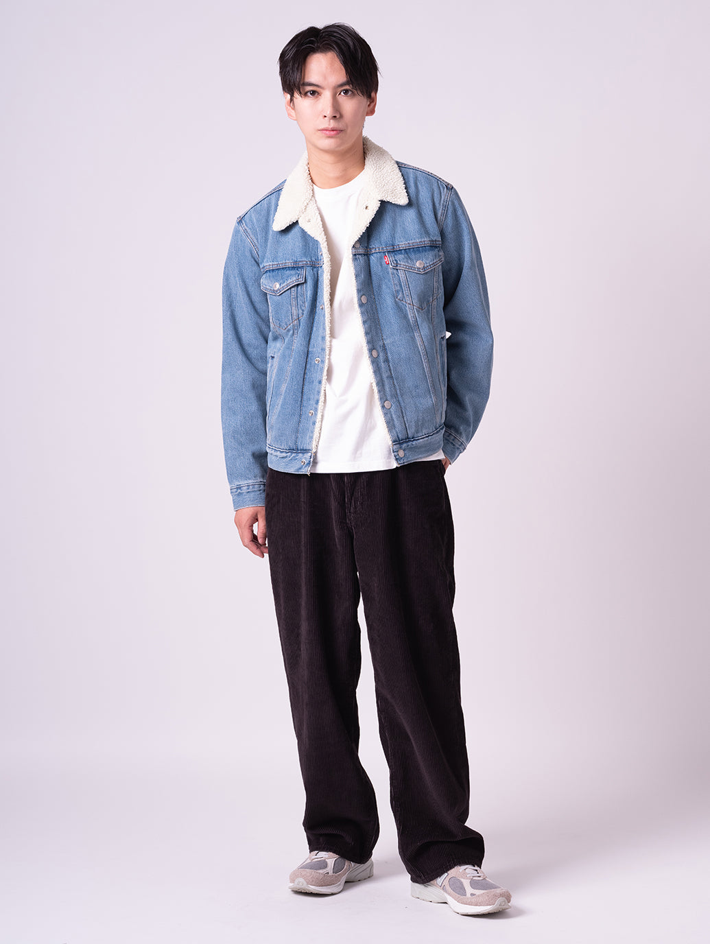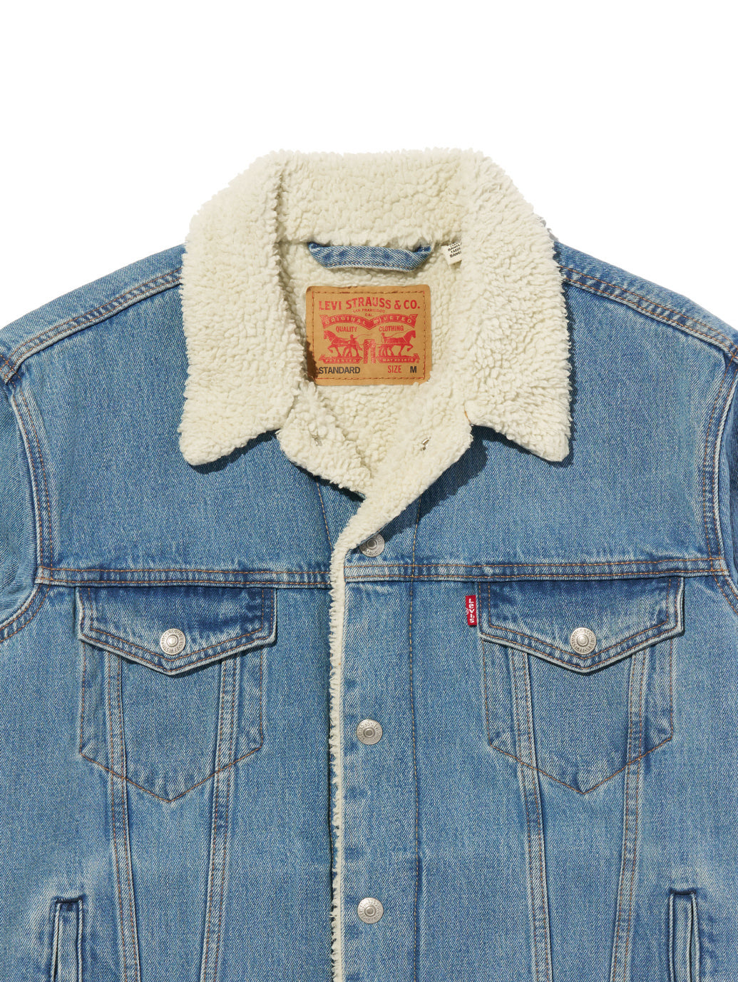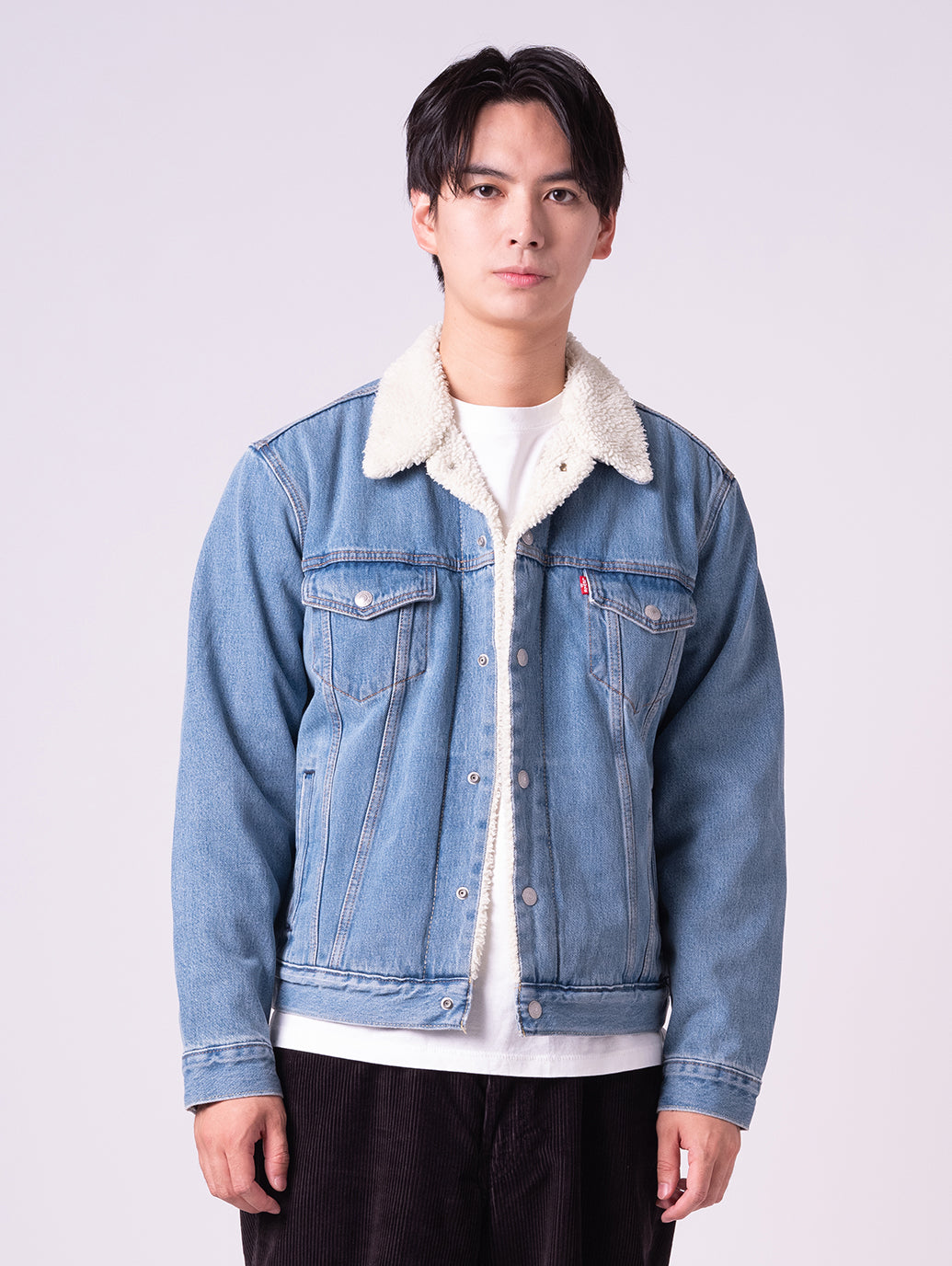 1967年から続くLevi’s®の定番アイテムの一つであるトラッカージャケットのより快適なバージョン、TYPEⅢシェルパ・トラッカージャケット。耐久性のあるデニムを使用し、裏地にはふわふわのシェルパをあしらい、保温性を高めています。