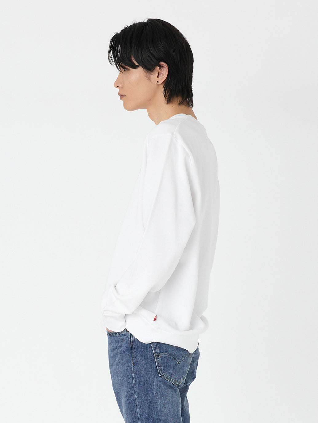 シーズン中ずっと着ていたくなるような心地良さの柔らかいフリース地を使ったこのスウェットシャツの胸元には、独特なグラフィックが施されています。 この季節の重ね着のマストアイテムです。