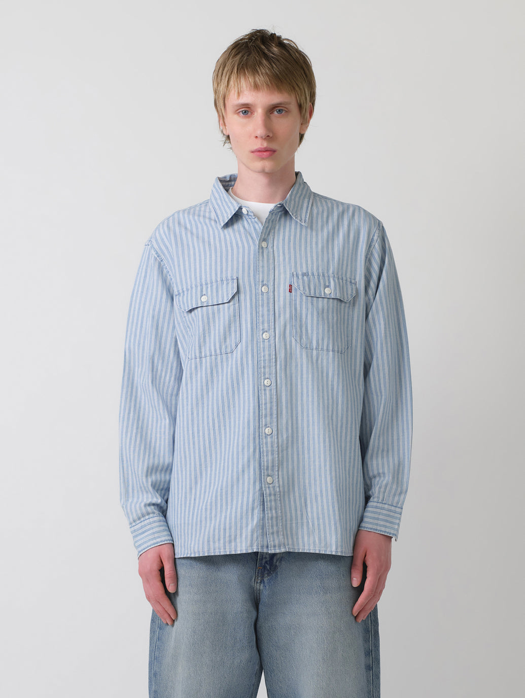Levi's®の定番アイテムの一つであるジャクソンワーカーオーバーシャツ。クラシック且つ現代のトレンドでもあるボックス型のリラックスシルエットのボディを採用。ユーティリティポケットを備え、機能性も兼ね備えています。ホワイトカラーのライトブルーのストライプ柄で爽やかさ十分な一着です。
