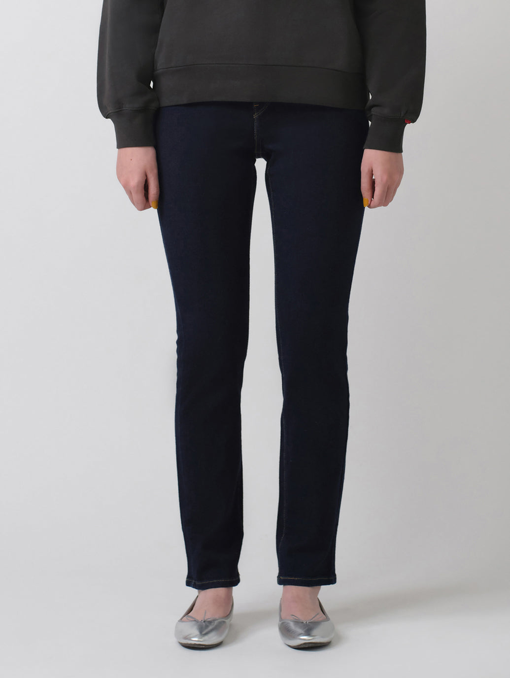 脚を長くし、曲線を包み込み、特徴を引き立ててくれるシェイピングスリム。スリムでありながらもひざ下はストレートなので、タイト過ぎないシルエット、そしてスムーズでサポート力のある軽量でありながら圧縮性のあるフロントパネルを使用して設計されているので履き心地も良いです。合わせやすいリンスカラーで年間通して活躍する一本です。