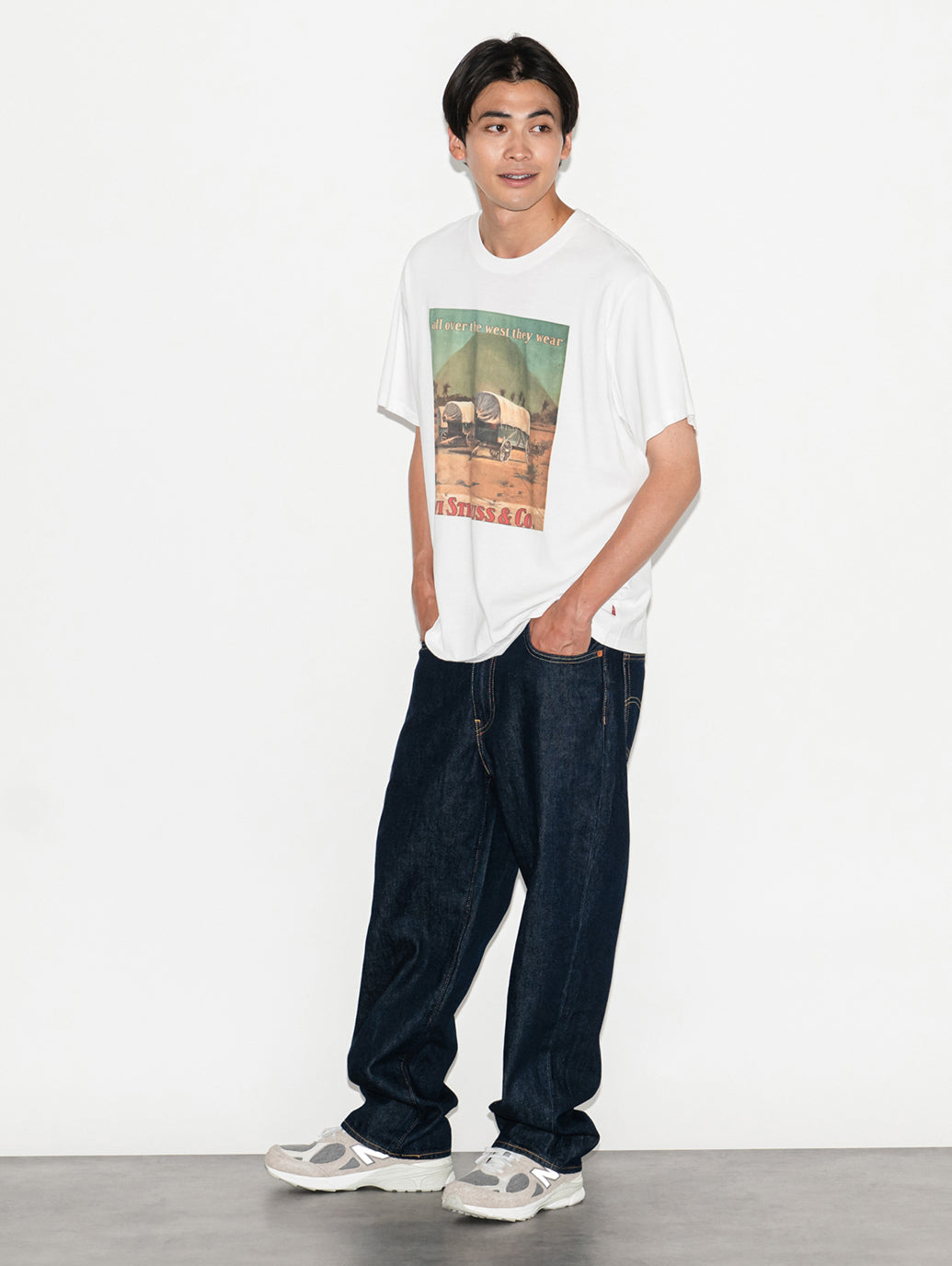 近年の90'sのリバイバルとしてストリート、スケートシーンで着実に知名度が拡がってきているシルエット。その名の通り全体的にゆったりとしたシルエットは90'sの雰囲気をさりげなく放ってくれます。定番且つ上品な印象もあるリンスカラーなので、スケートシューズのみならず、レザーシューズを合わせドレッシーに穿き崩すのもお勧めです。