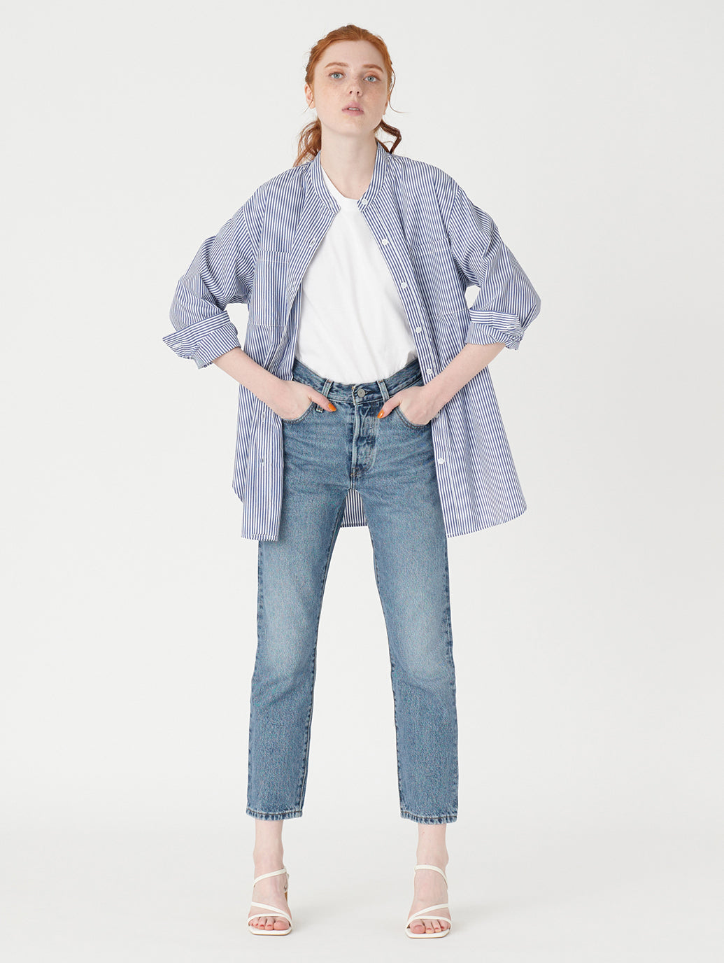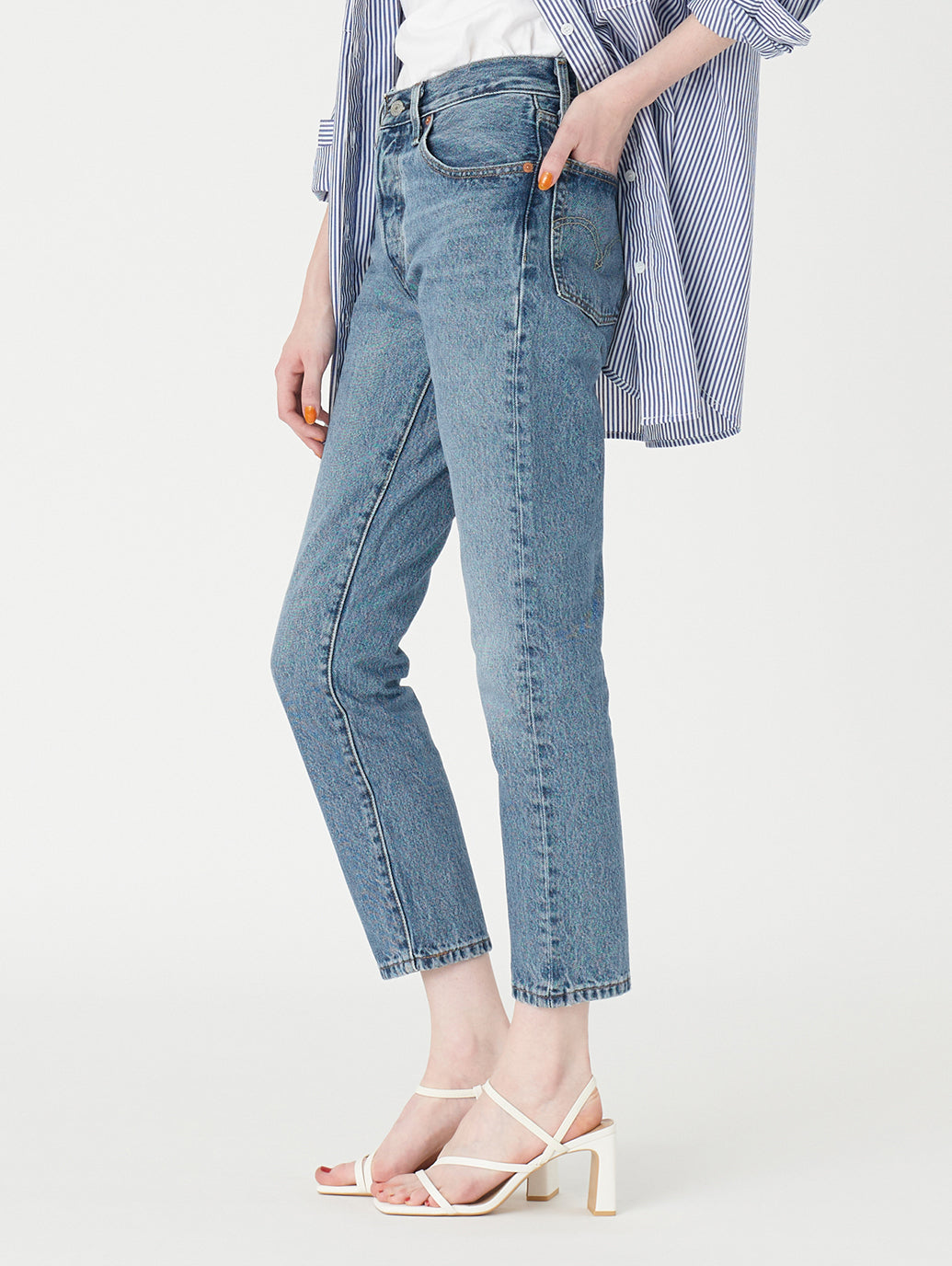 クラシックなストレートレッグとアイコニックなスタイリングの501®はジーンズの原型とも言われてきました。お腹周りをすっきり見せてくれるボタンフライが特徴の501®。 1890年にロットナンバーとして「501」が初めて商品に付けられて以来、たくさんの人々に愛され続け、その人らしさを表現する究極のアイテムの一つとして今も人気のジーンズです。100%コットン素材のクロップド丈のシルエットを今年らしいライトのカラーでデザインされました。同系色のライトカラーのトップスで合わせたり、一年中使える万能アイテムです。