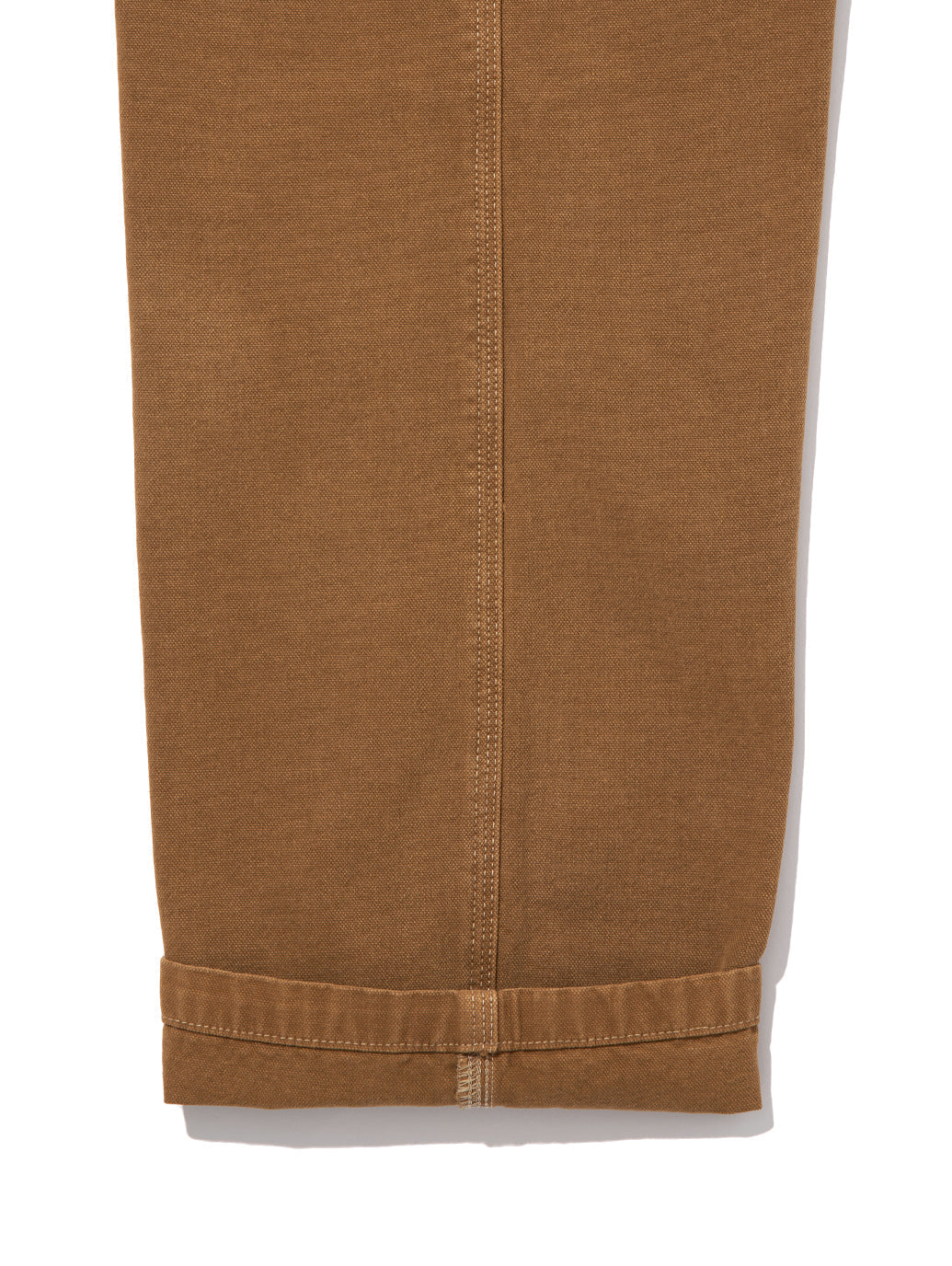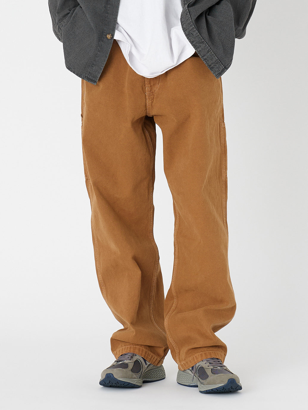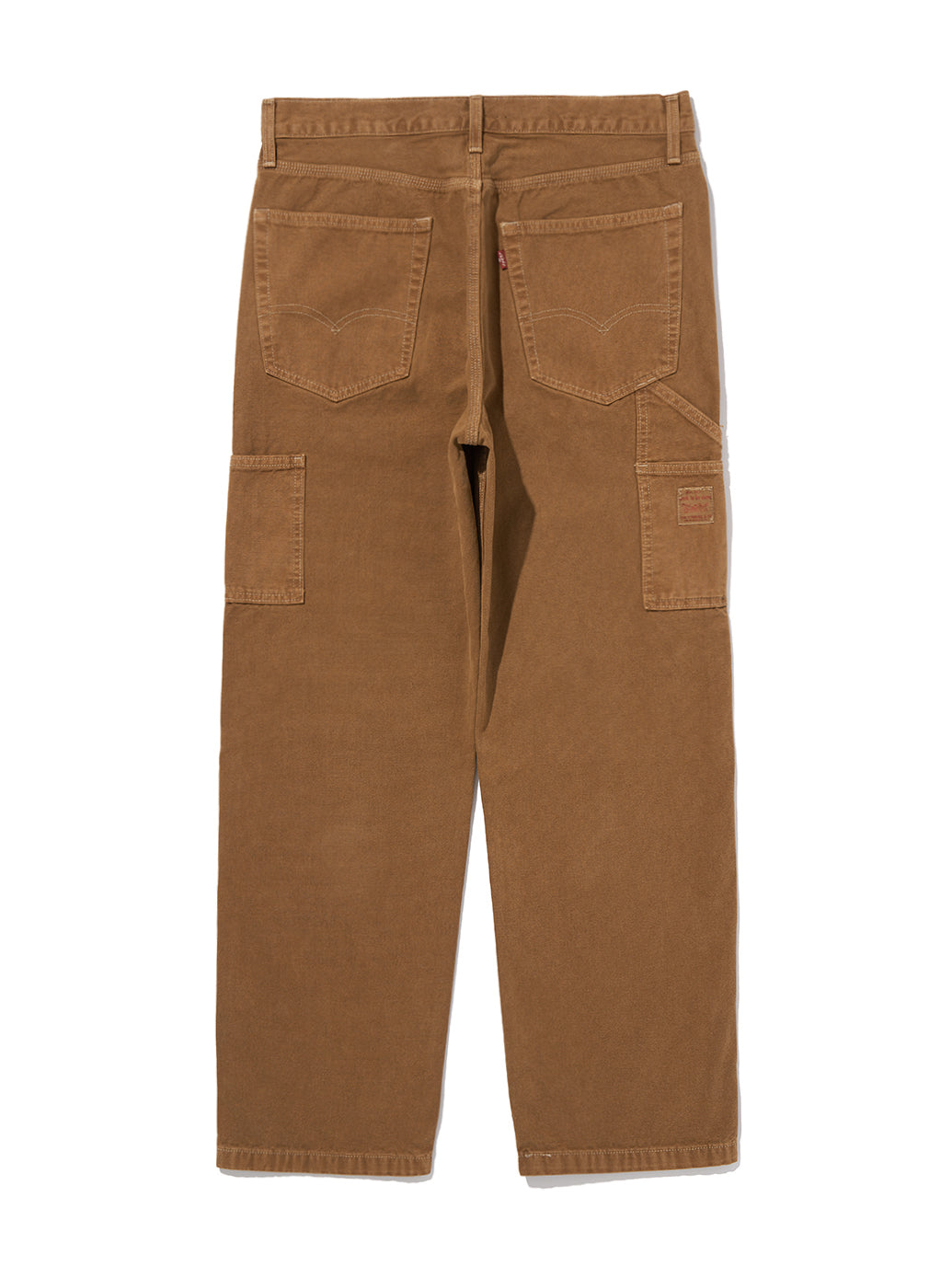 両サイドには工具入れ用としてのポケットも配し、丈夫な綿100%の生地でカーペンターパンツの特徴をしっかりと落とし込んでいます。そして、モダンで全体的にルーズなフィットとガーメントダイで染めた味わいのあるブラウンカラー。お気に入りのグラフィックTシャツまたはダウンと合わせて。あらゆる着こなしを楽しめます。