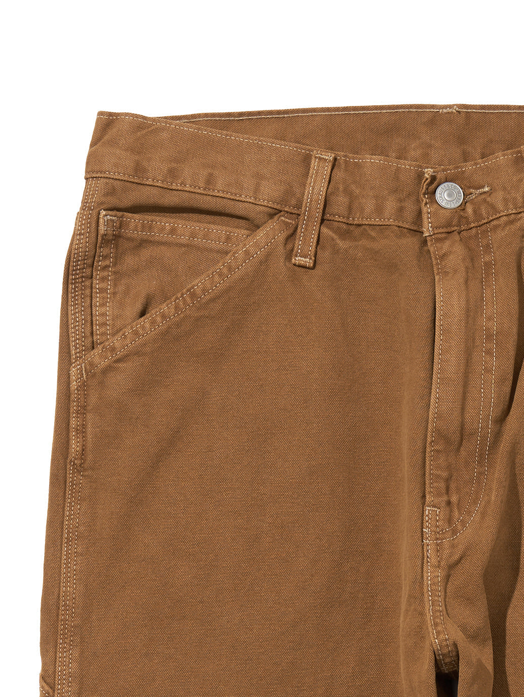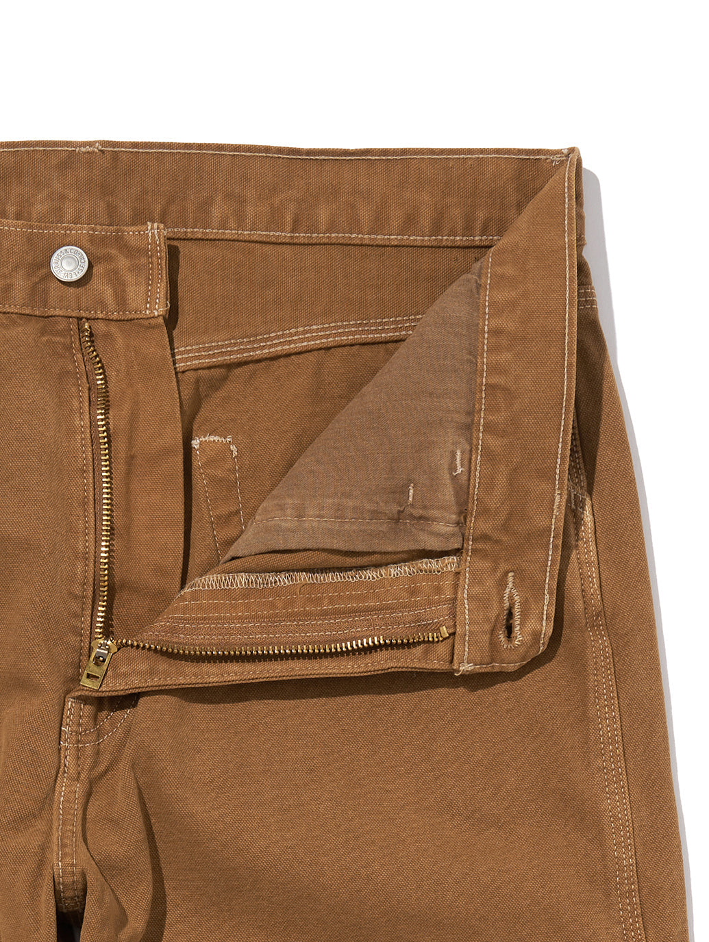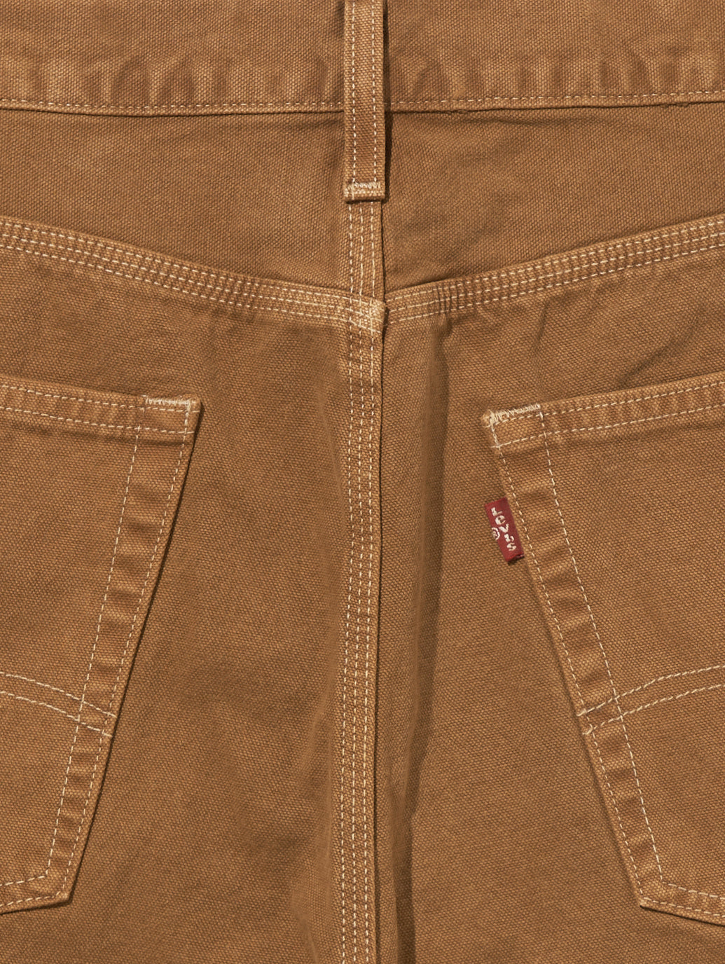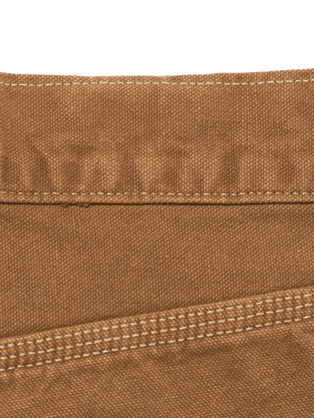 両サイドには工具入れ用としてのポケットも配し、丈夫な綿100%の生地でカーペンターパンツの特徴をしっかりと落とし込んでいます。そして、モダンで全体的にルーズなフィットとガーメントダイで染めた味わいのあるブラウンカラー。お気に入りのグラフィックTシャツまたはダウンと合わせて。あらゆる着こなしを楽しめます。