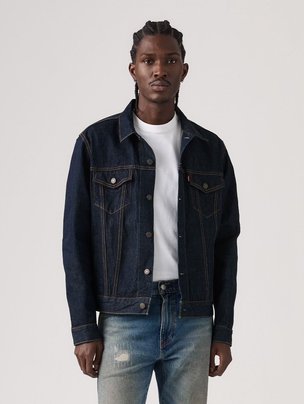 トラッカージャケットは、単なるコーディネートのアクセントにとどまらず、季節やトレンドに左右されない普遍的なスタイルを体現します。 シンプルで美しいシルエット、適度な重みのある素材、そしてさりげなく洗練されたクールさを兼ね備えた一着は、長く愛用できる大人の定番。