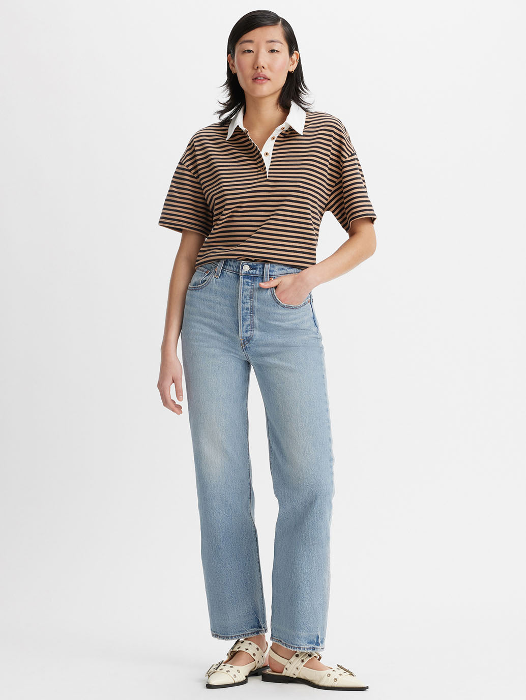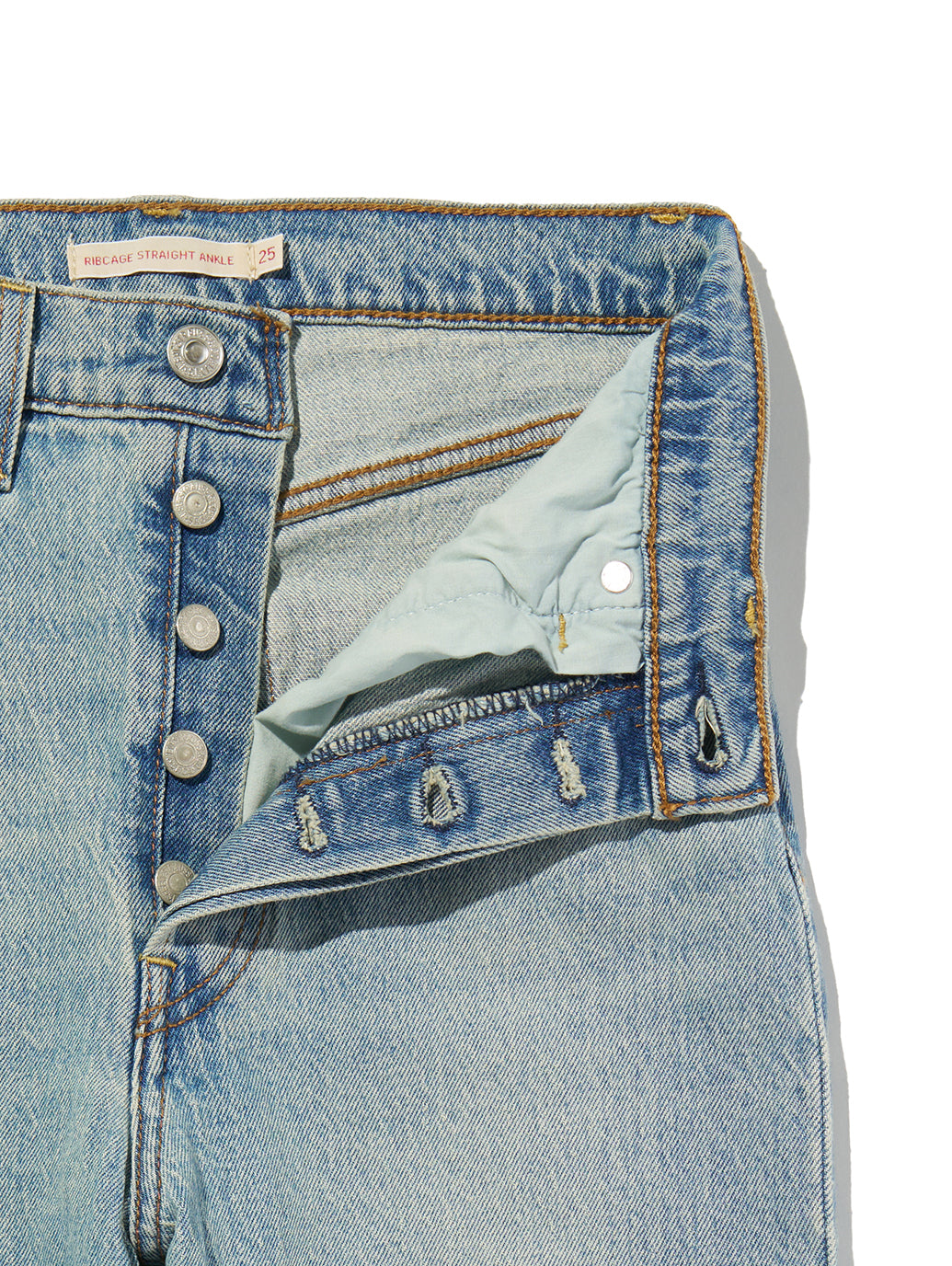 レディースのラインナップで最もハイウエスト 驚異的な14インチライズのジーンズはヒップをスリムに見せ、ウエストを強調し、脚を長く見せてくれるジーンズです。スタイルの良さを強調して、見かけだけでなく気分も上げてくれるフィットです。フルレングスのシルエットで、長く美しい脚のラインを演出します。ボタンフライでおなか回りをすっきり見せてくれる優れものです。カラー違いで欲しくなる一本です。