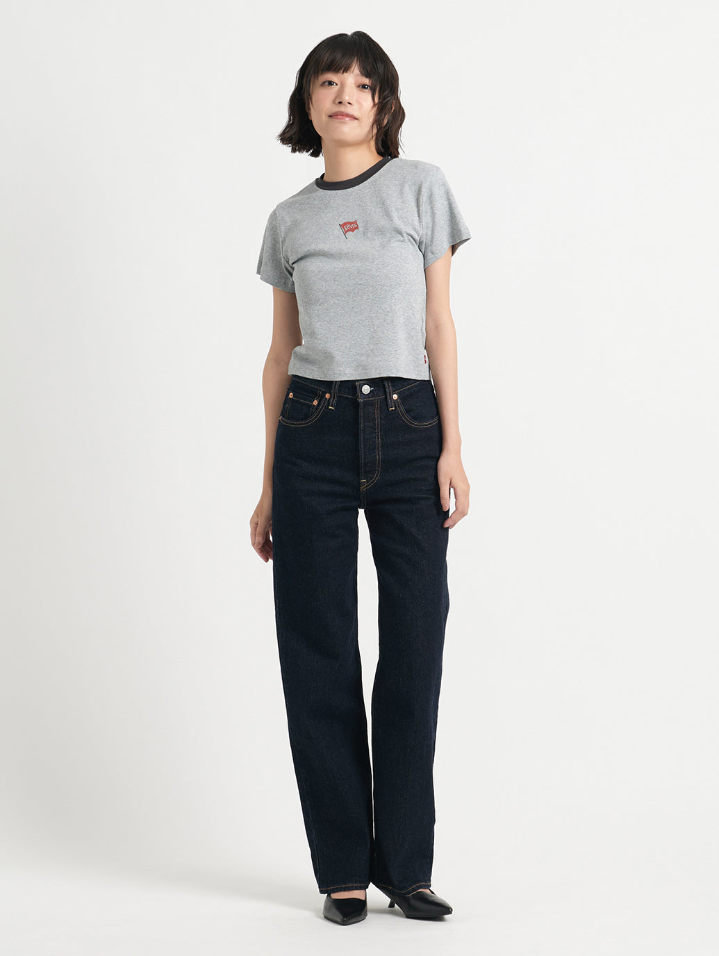 レディースのラインナップで最もハイウエスト、驚異的な12インチライズのジーンズはヒップをスリムに見せ、ウエストを強調し、脚を長く見せてくれるジーンズです。スタイルの良さを強調して、見かけだけでなく気分も上げてくれるフィットです。フルレングスのシルエットで、長く美しい脚のラインを演出します。ボタンフライでお腹周りをすっきり見せてくれる優れものです。カラー違いで欲しくなる一本です。