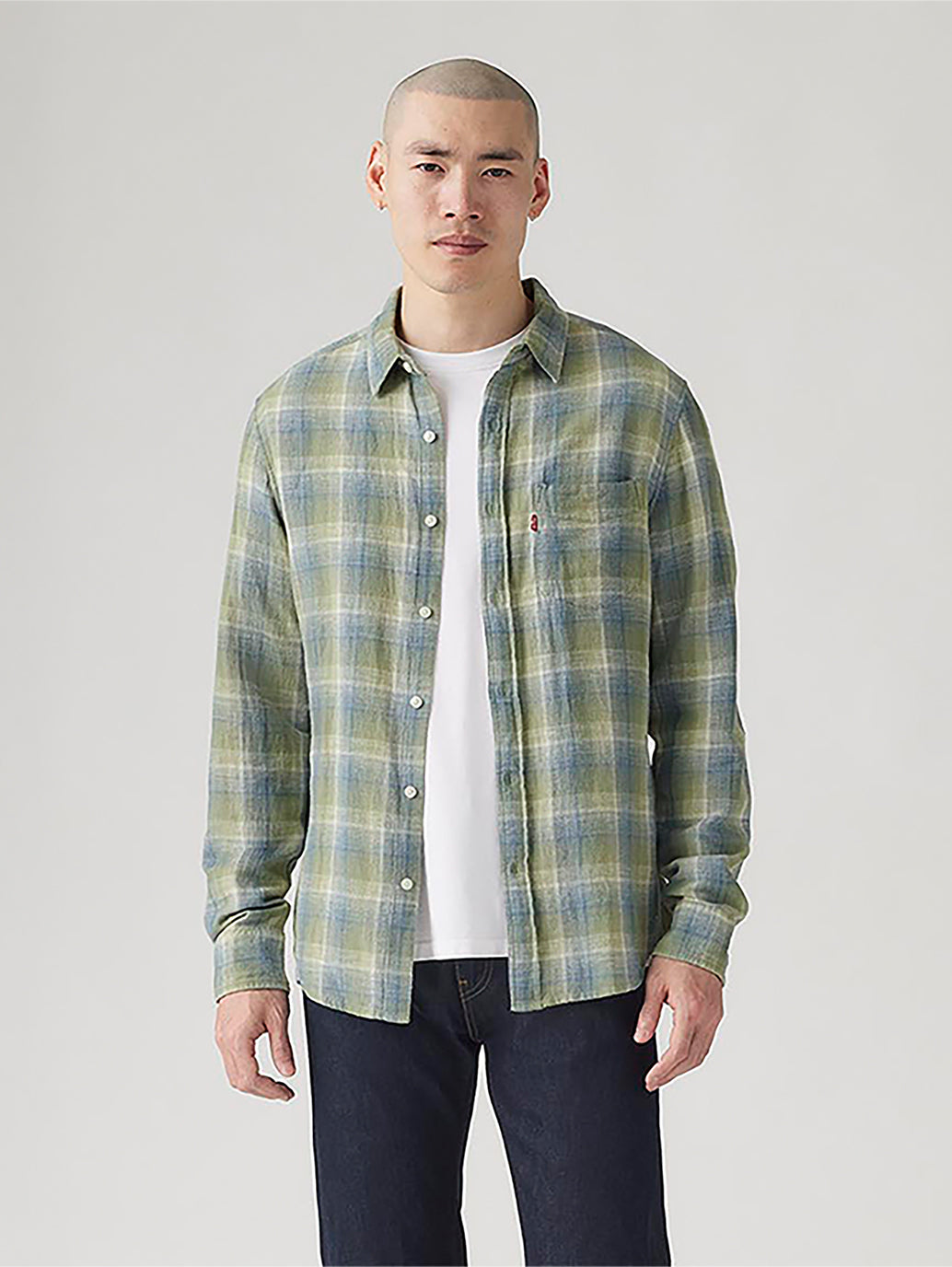 Levi's®が展開している人気のサンセットシャツ。流行に左右されないベーシックなスタンダードフィット。胸元にポケットを配したチェック柄のデザイン。麻43%、レーヨン34%、綿23%で柔らかい肌触り。お気に入りのパンツと合わせていただきたい一着です。