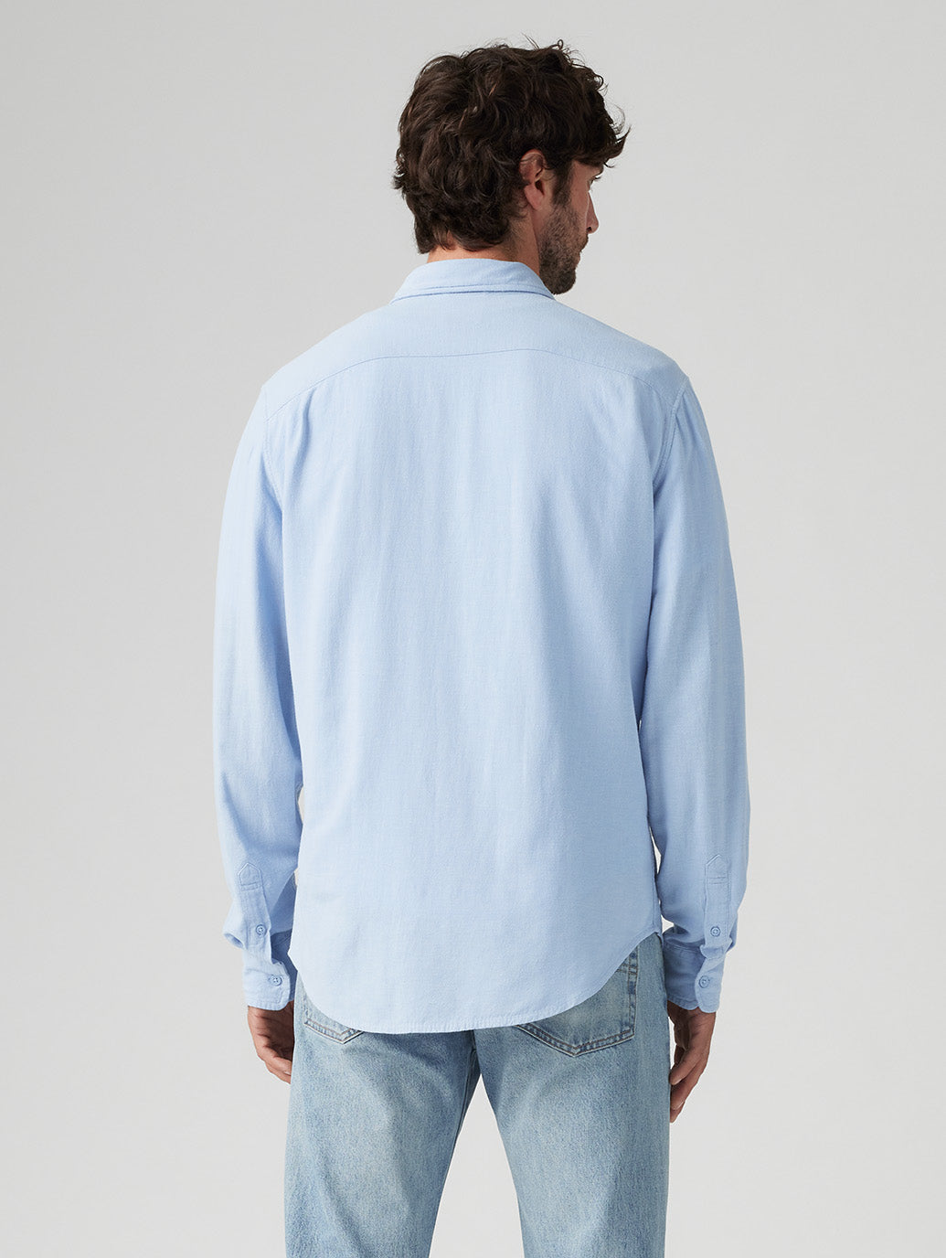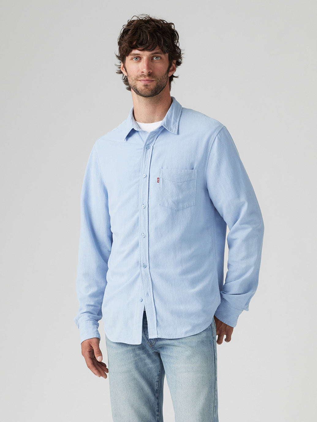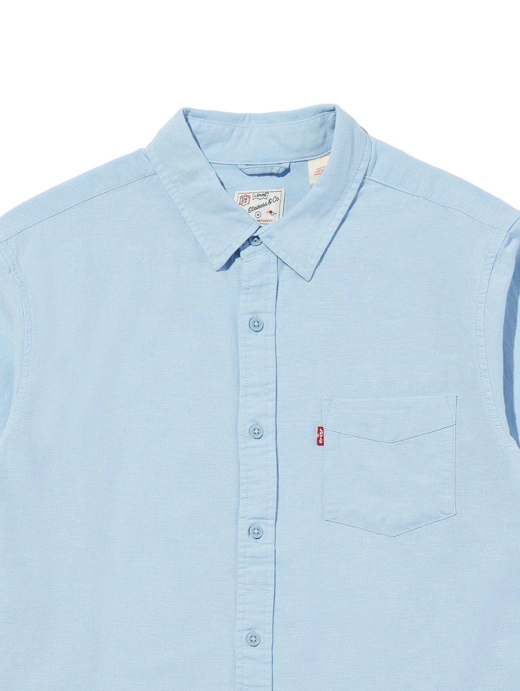 Levi's®が展開している人気のサンセットシャツ。流行に左右されないベーシックなスタンダードフィット。胸元にポケットを配したライトブルーカラーのデザイン。麻43%、レーヨン34%、綿23%で柔らかい肌触り。お気に入りのパンツと合わせていただきたい一着です。