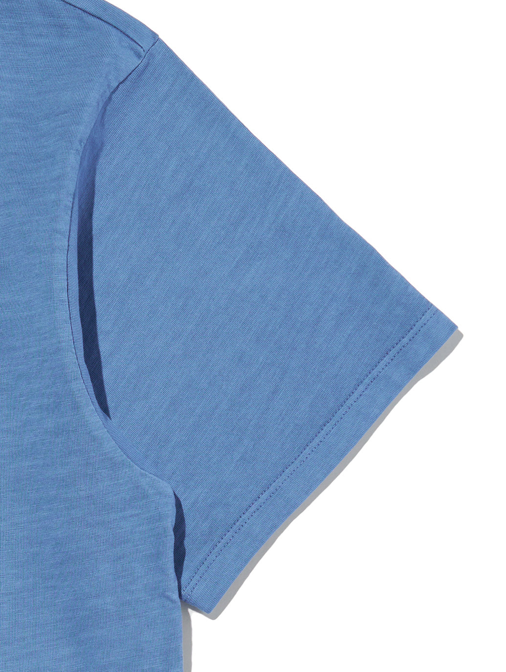 ゆったりとしたリラックスシルエットのTシャツ。ブルーカラーのボディにカウボーイがプリントされたデザインです。流行りのリンスカラーのジーンズやワークパンツと合わせていただきたい一枚です。