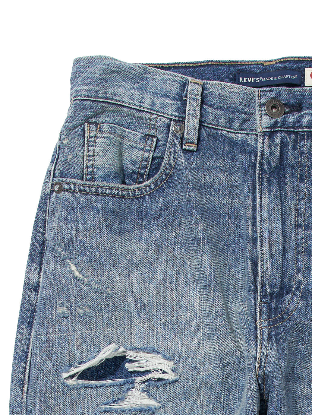 LEVI'S® MADE&CRAFTED® ハイライズ BORROWED FROM THE BOYS KIRUTO MOJ インディゴ DESTRUCTED