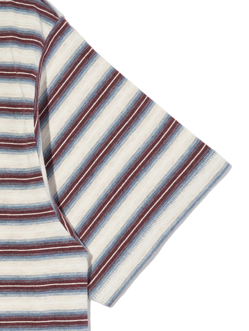 ストライプ柄で胸元にさりげなくロゴをあしらった夏にマストアイテムのTシャツ。ドロップショルダーのボクシーなシルエット。綿100%の柔らかいコットン素材。お気に入りのパンツに合わせて頂きたいアイテムの一つです。
