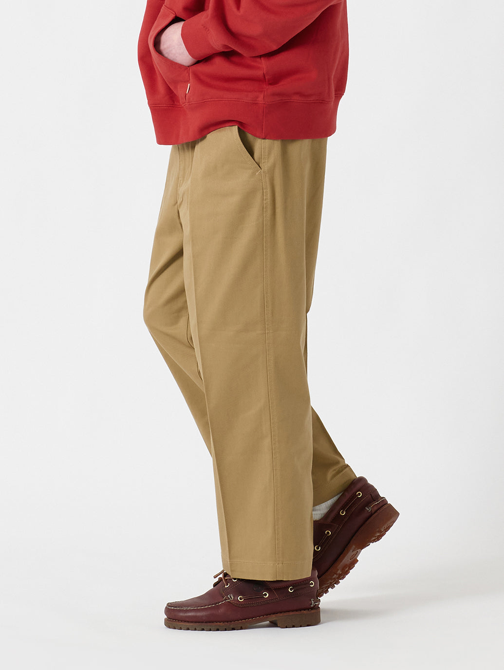 ストリートウェアの雰囲気と、日曜日のちょっとした外出に穿くパンツの雰囲気も漂わせるワイドレッグチノパンツ。はっきりと主張するセンタークリースが入ったリラックスフィットで、恋人の両親に会う時に着ていける、きちんとした印象も感じさせます。クロップド丈を活かして、お気に入りのシューズを強調しましょう。 柔らかく心地よい手触り生地はストレッチが効いているので、1日中穿いても快適です。 洗濯してもクリースをくっきりとキープする、防シワ加工を施したSTA PRESTパンツ。