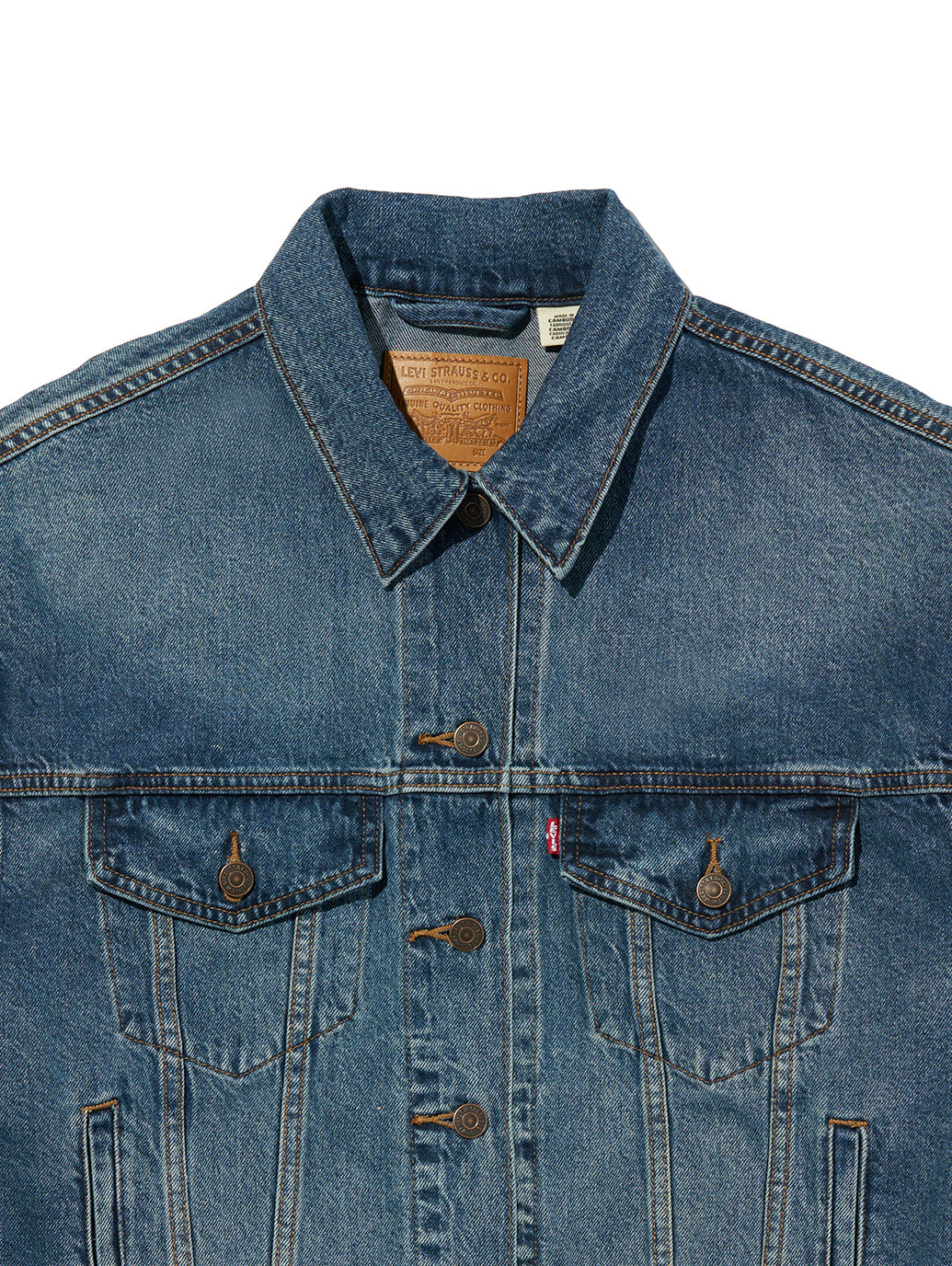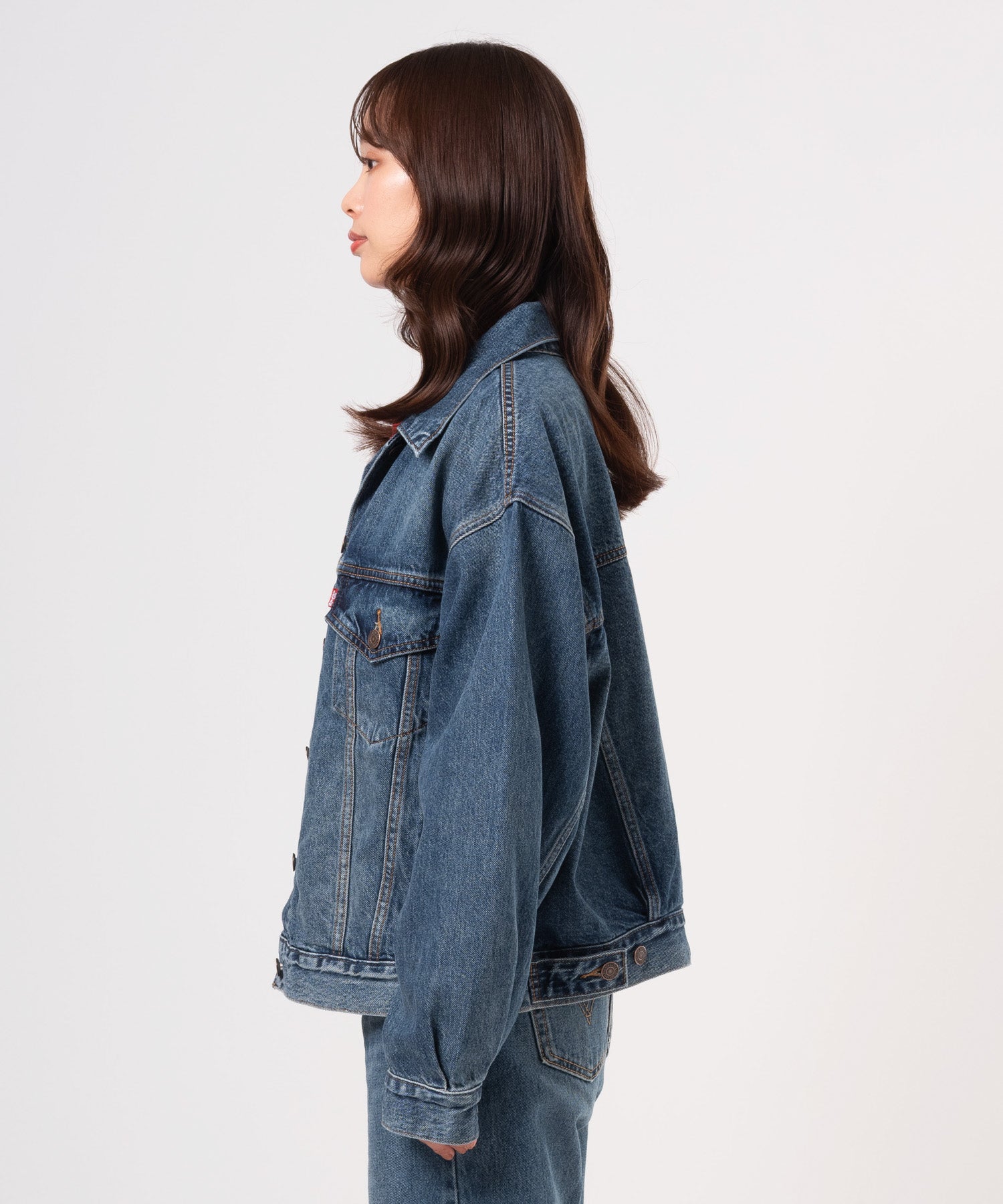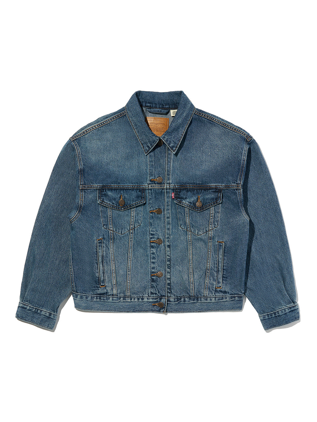 シンプルなシェイプで、着やすいウェイトまわりのデザインのデニムジャケット。ボディラインに沿ったレトロなカットのシルエットが90年代風の雰囲気を演出します。同じカラーのボトムスと合わせてセットアップが完成します。