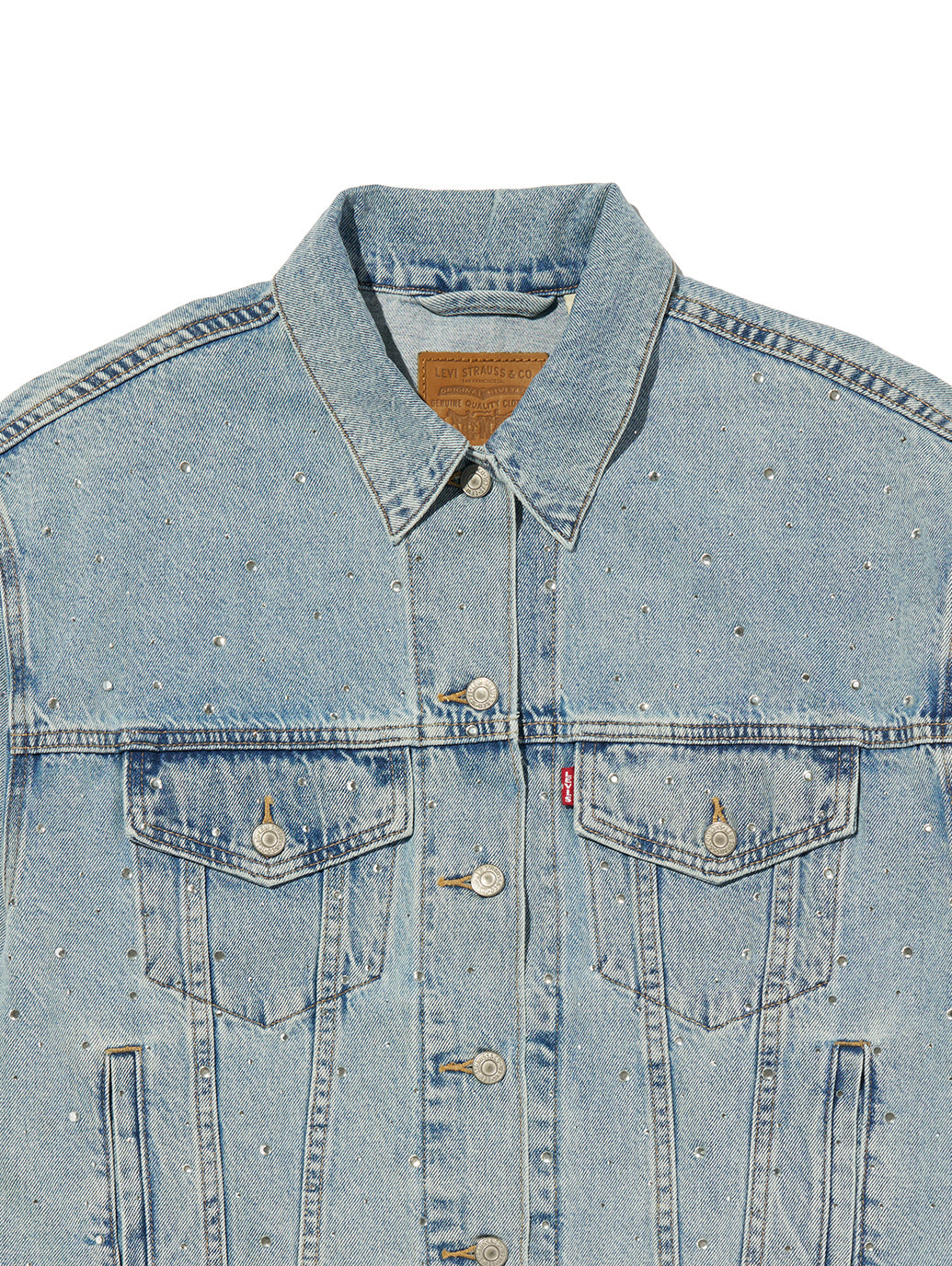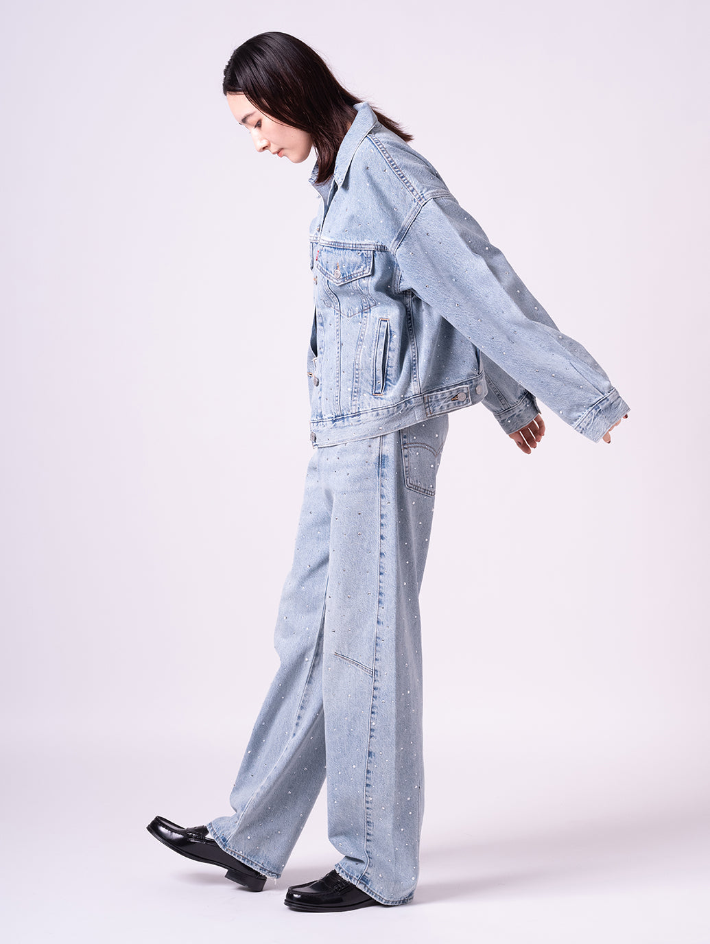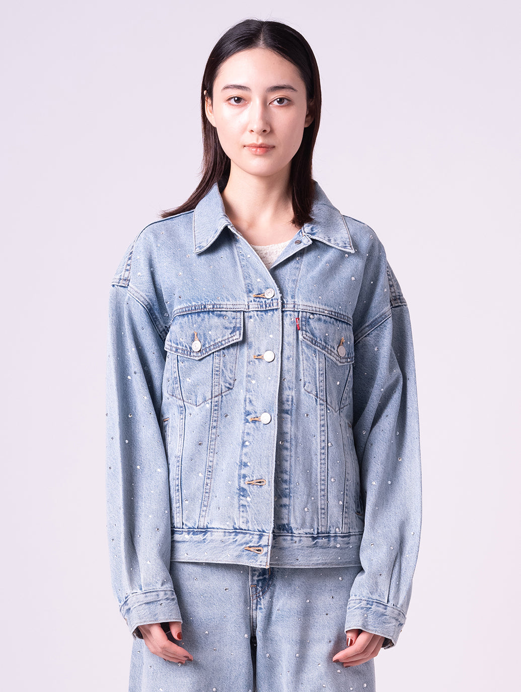 シンプルなシェイプで、着やすいウェイトまわりのデザインのデニムジャケット。ボディラインに沿ったレトロなカットのシルエットが90年代風の雰囲気を演出します。同じカラーのボトムスと合わせてセットアップが完成します。
