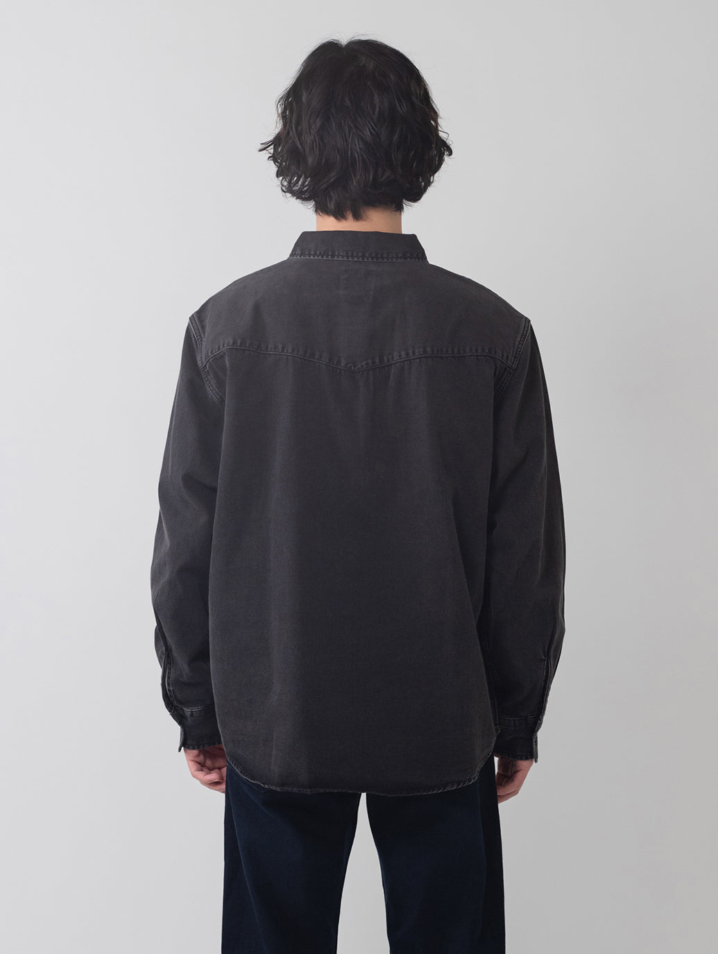 綿100%のブラックカラーデニムのゆとりのあるリラックスシルエットを採用して。チノやワークパンツにも合わせやすく着回しの効く一着です。