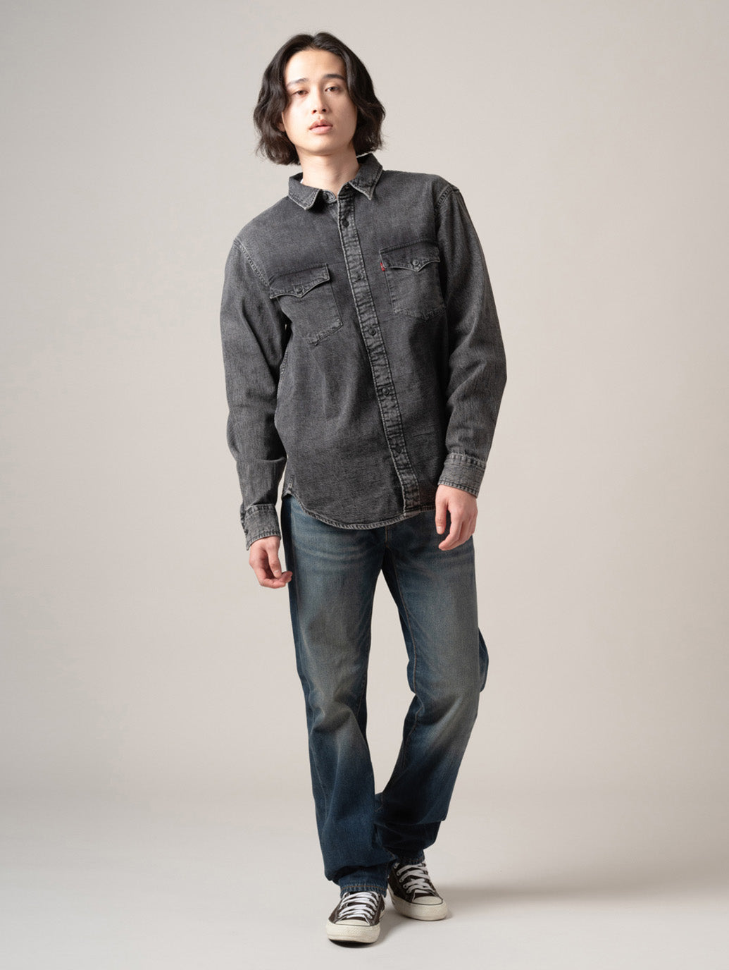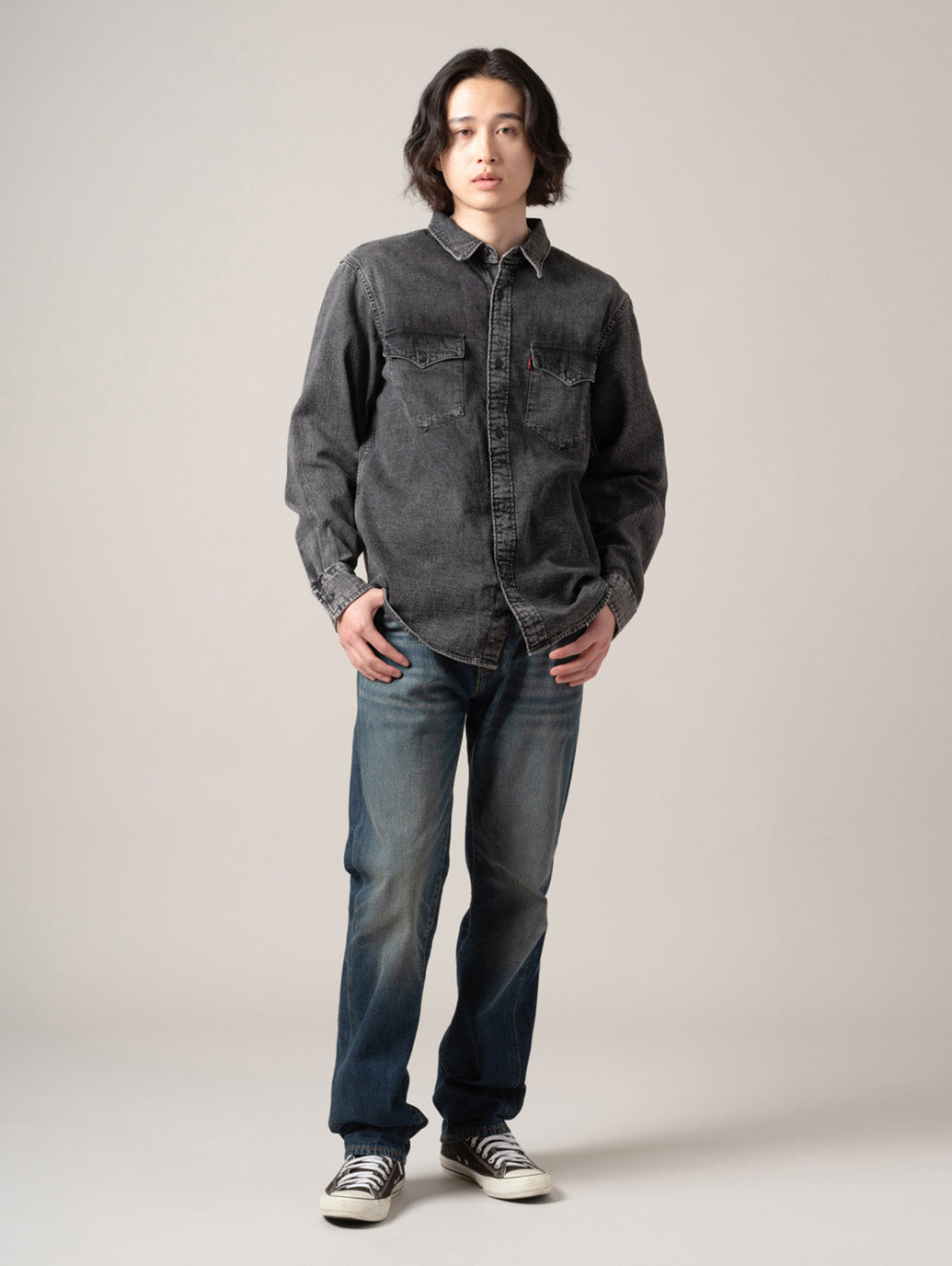 Levi's®の定番アイテムの一つであるウエスタンシャツを現代的にアレンジしたリラックスフィットのウエスタンシャツ。爽やかで涼しげな印象を与えてくれるライトカラーのボディに衿部部のみベージュカラーの切り替えしのデザインでTシャツやスウェットの上に羽織るアイテムとして活躍する一着です。 model:181cm B89 W68 H83 着用サイズ:L
