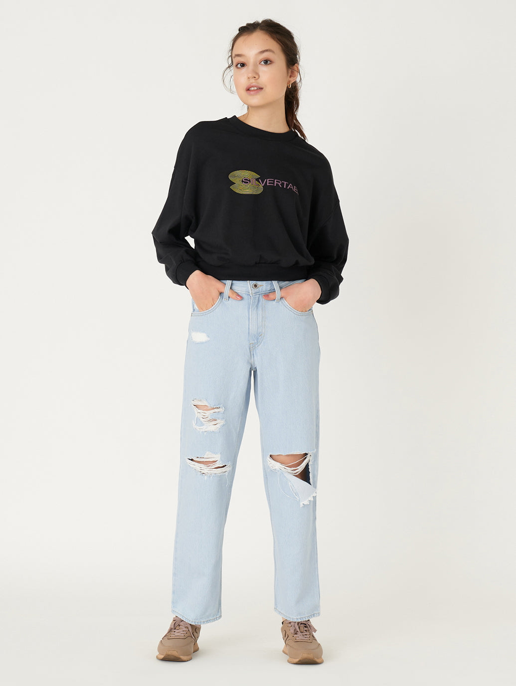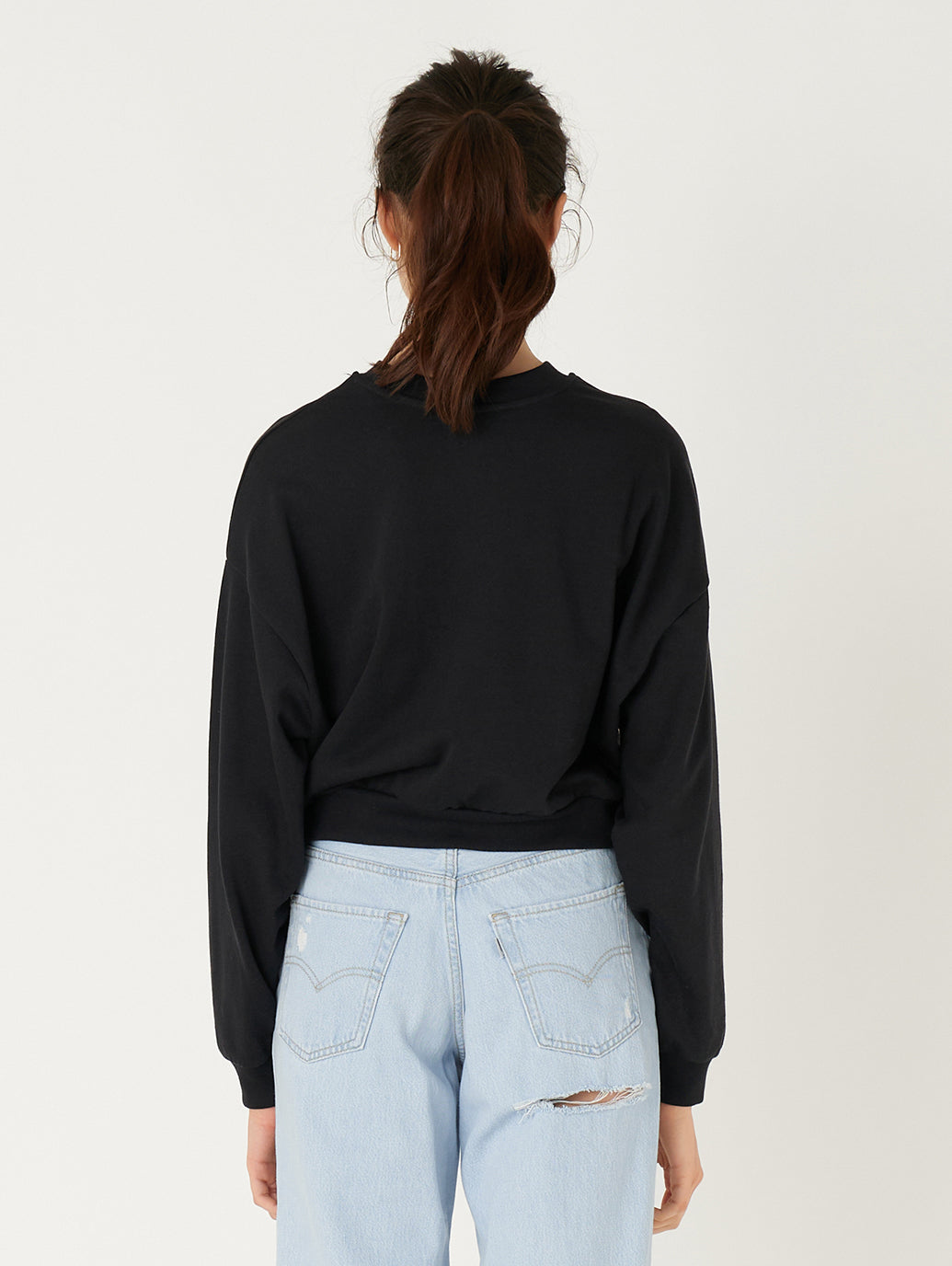 トレンドのショート丈にデザインされたスエットはありそうでなかった一枚。どんなボトムスとも相性抜群の一着です。