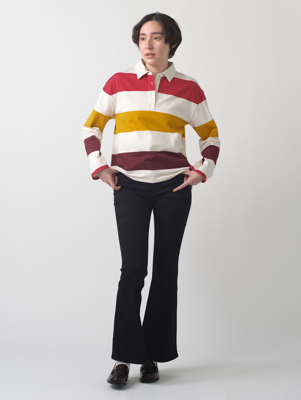 ハイウエストのブーツカットジーンズが登場しました。脚を美しく見せるクラシックな脚長シルエットが特徴的です。高品質のストレッチ素材を採用し一日中快適な穿き心地でありながら、ストレッチ性の高い素材を採用しています。一年中大活躍の一本です。