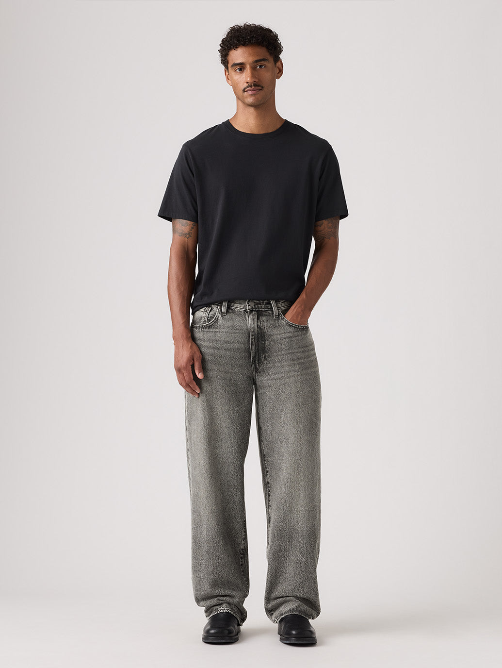 90年代のリバイバルとしての大胆なスタイルの578™ Baggy ジーンズ。その名の通り全体的にゆったりとしたバギーなフィットで、裾に向かって緩やかに細くなるテーパードなのでお好みのスニーカーに裾をダボつかせて穿くのがお勧めです。90年代を感じるブラックユーズドカラーで”いなたい”雰囲気でストリートやスケートファッションに落とし込みやすい一本です。