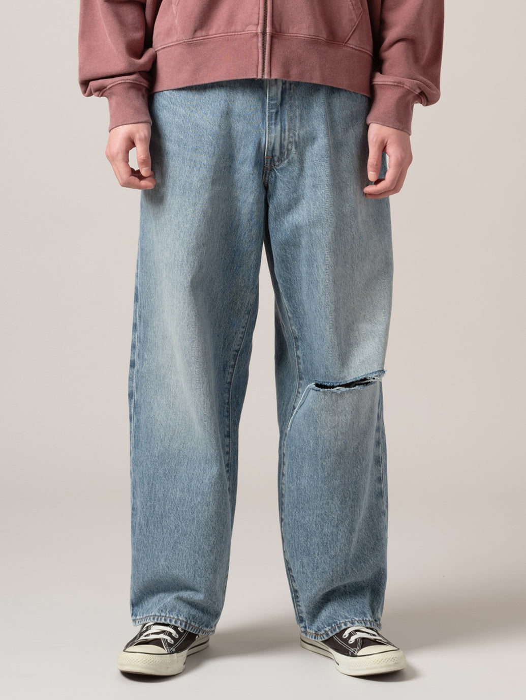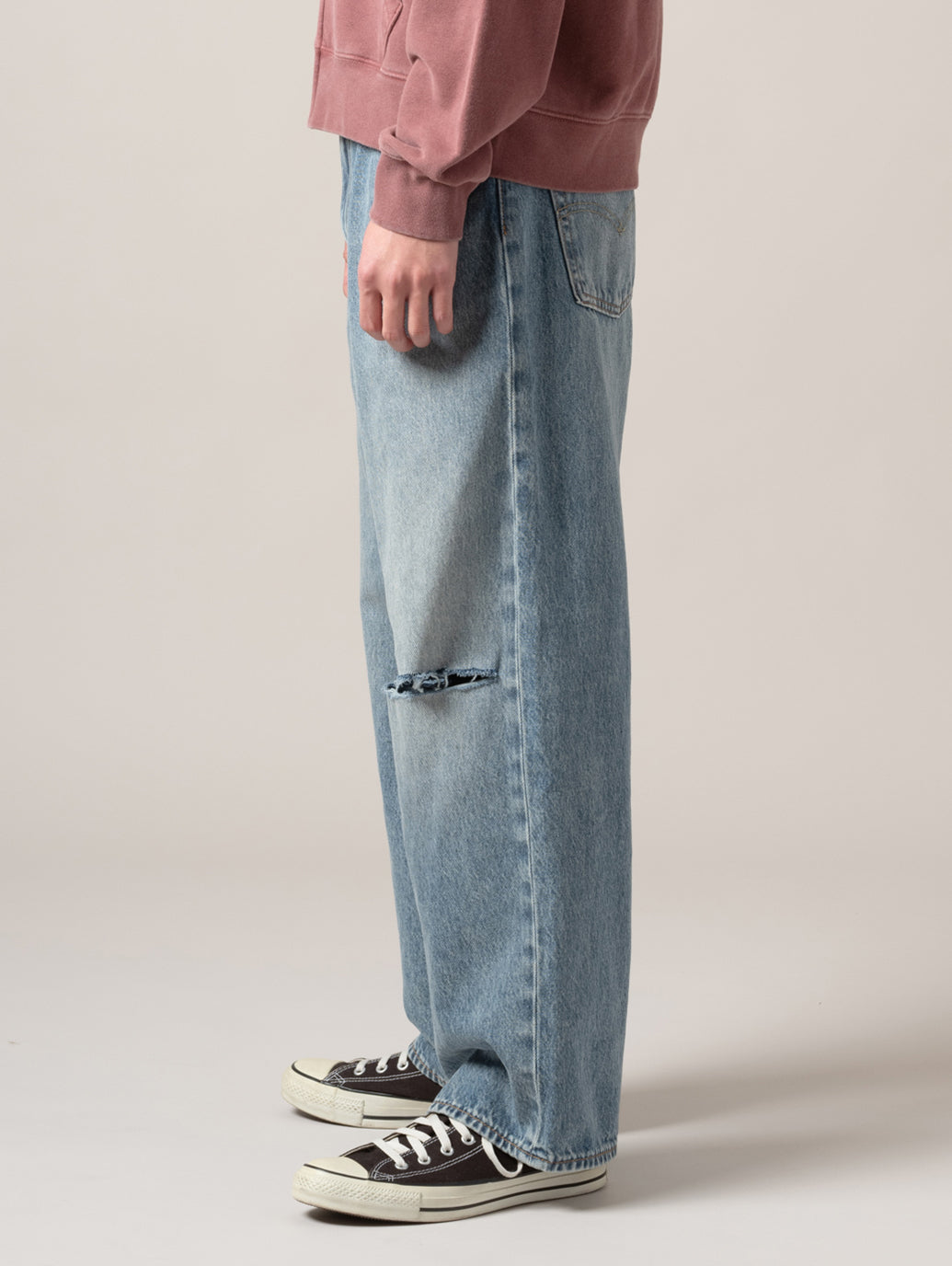 90年代のリバイバルとして大胆なスタイルの578™ Baggy ジーンズ。その名の通り全体的にゆったりとしたバギーフィットに、裾に向かって緩やかに細くなるテーパードなのでお好みのスニーカーに裾をダボつかせて穿くのがお勧めです。90年代を感じさせるミッドカラーが”いなたい”雰囲気でストリートやスケートファッションに落とし込みやすい一本です。 model:181cm B89 W68 H83 着用サイズ:33inch