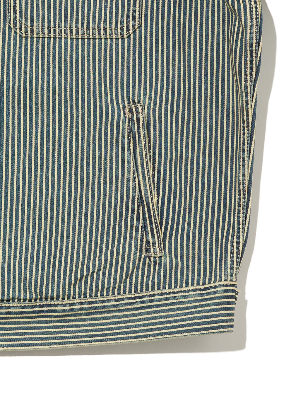 クラシックなワークウェアの要素を落とし込んだヴィンテージ風のジャケット。ヒッコリーストライプ柄のゆったりとしたボクシーなリラックスシルエット。フロントに計4つのポケットを配し、機能性も十分なデザインです。春先の羽織ものとしては勿論一年通して活躍する一着です。