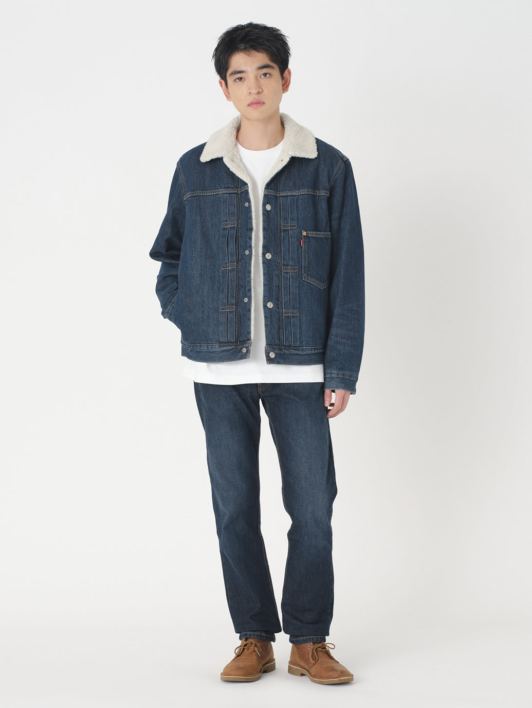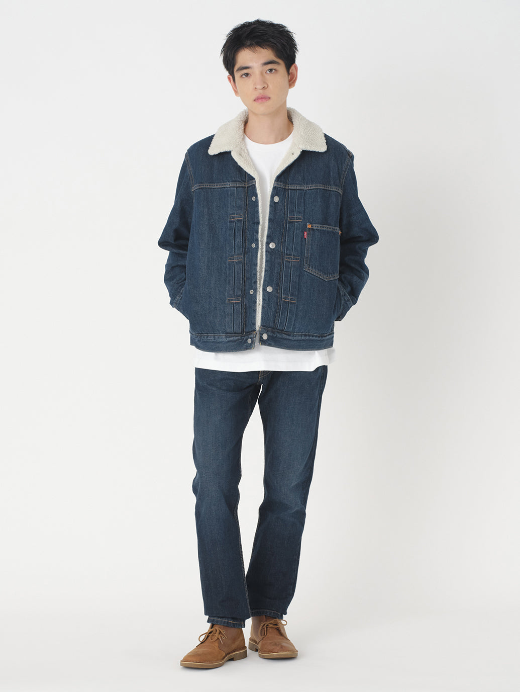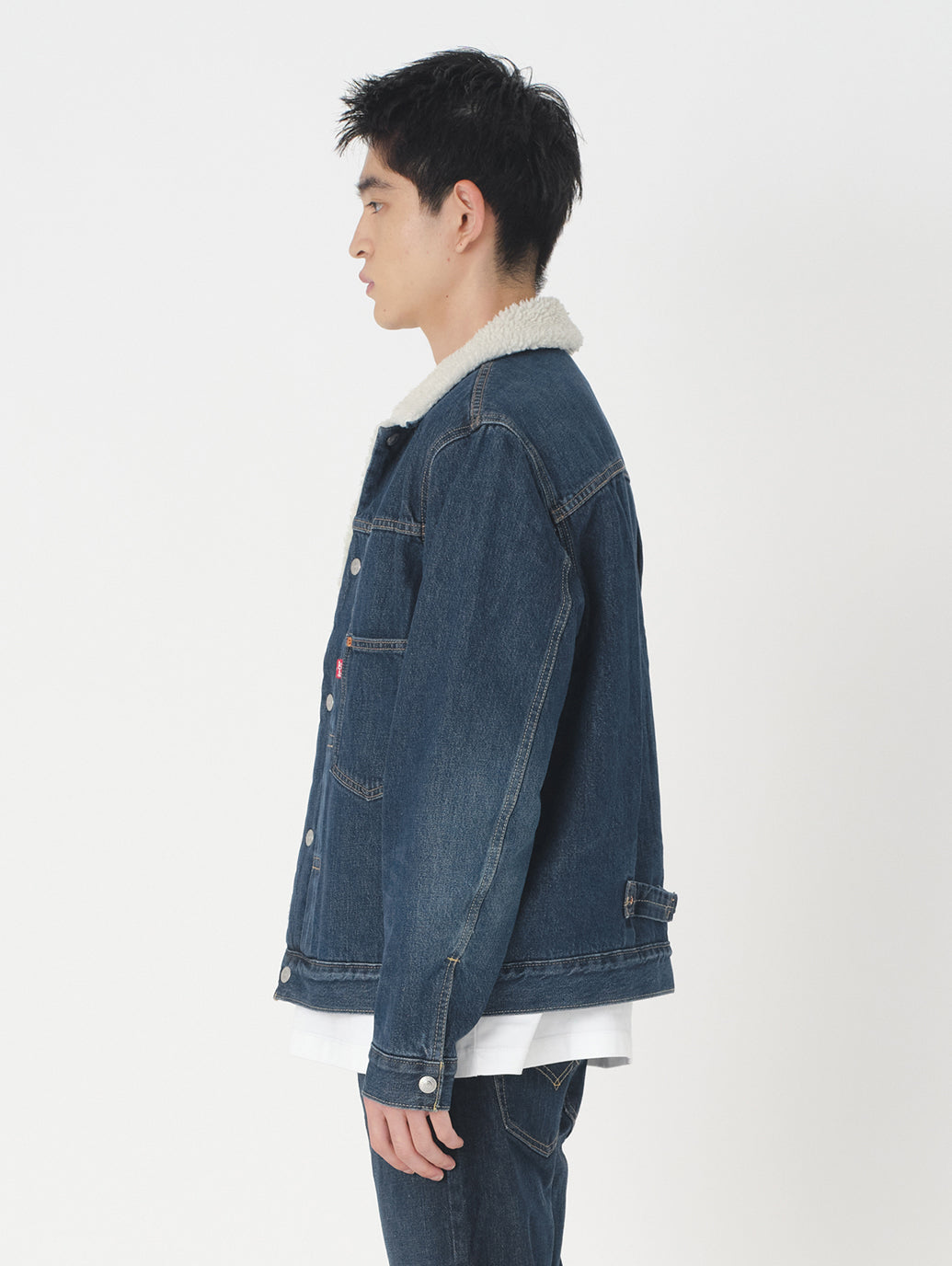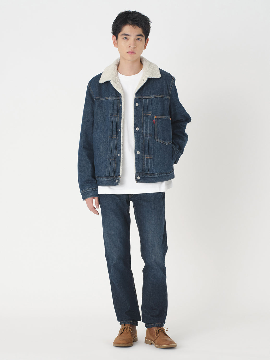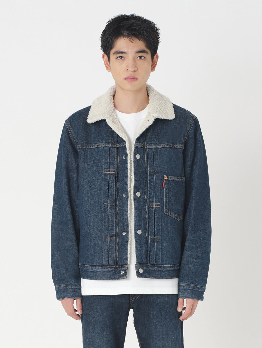 Levi's®の冬の定番アウターの1つである シェルパトラッカージャケット。1st(ファースト)トラッカージャケットをベースとし、裏地は保温性と快適性を実現したプラッシュシェルパ仕様。ジャストサイズは勿論、フーディーや厚手のニット等と重ね着したい場合にはワンサイズアップでお選びいただくことをお勧めします。通常のGジャンと同様に幅広いスタイリングに合わせやすいですし、ジェンダーフリーとしてもお勧めしたい1着です。