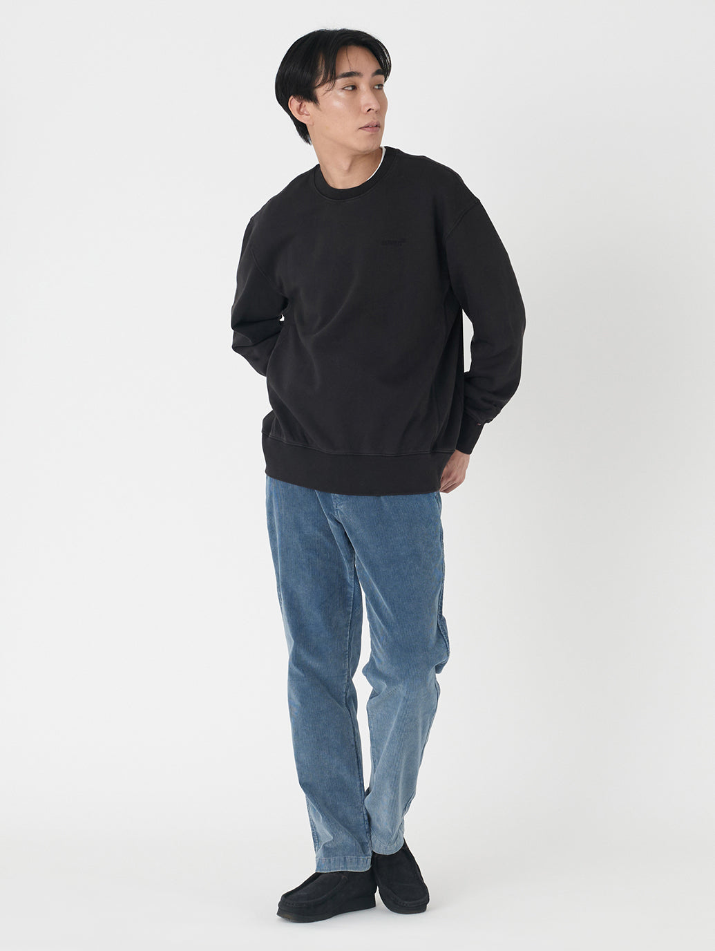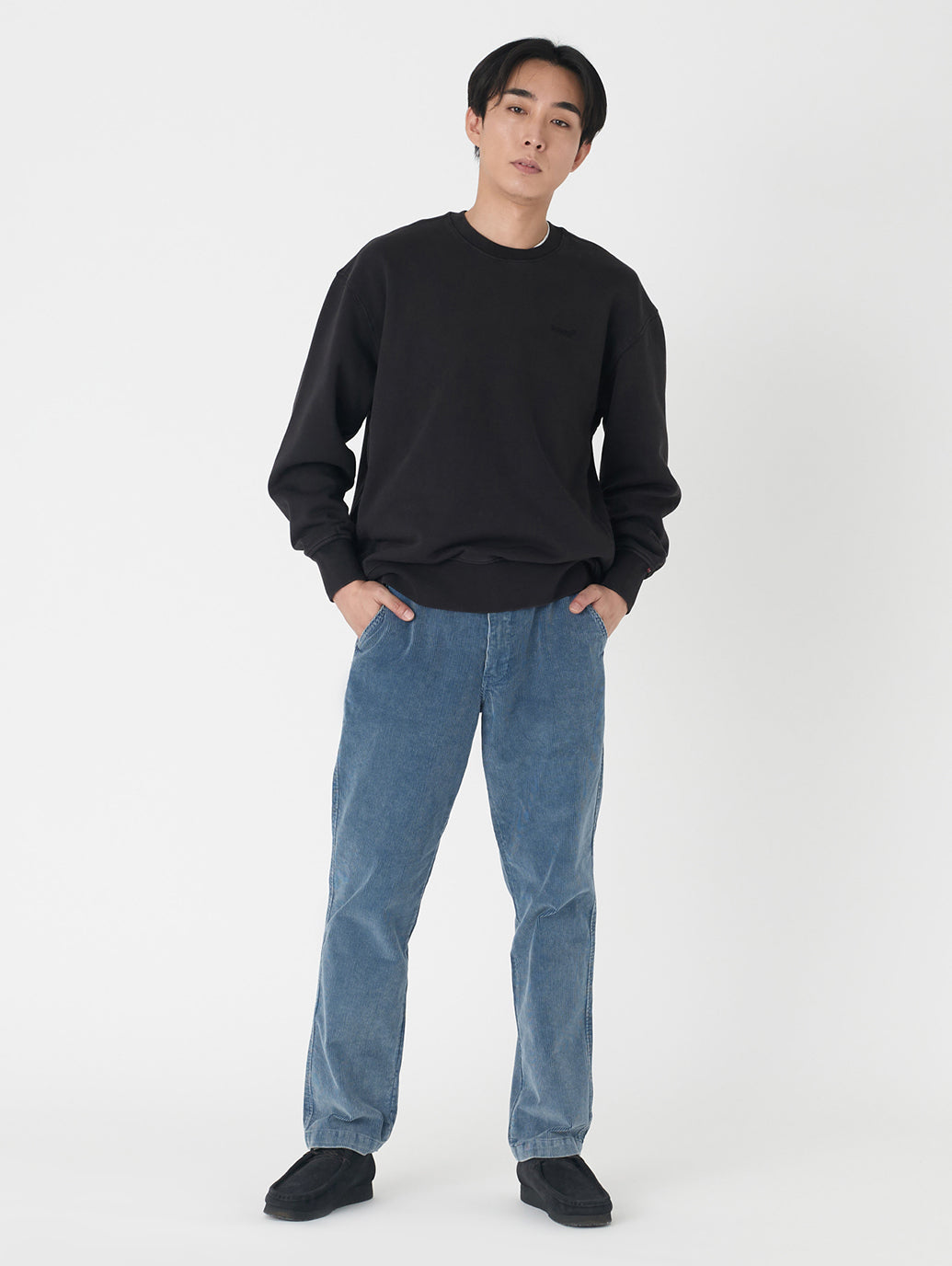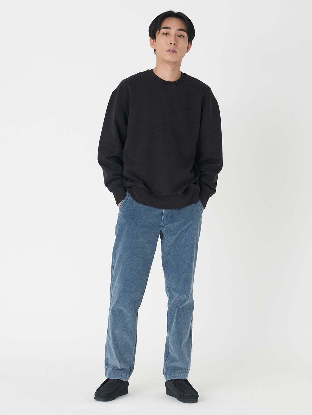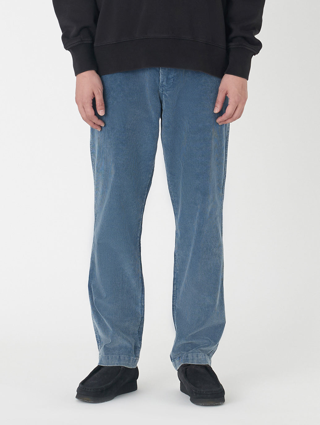 ストレートレッグのソフトなパンツで、腿にかけてきれいなレギュラーフィットスタイルです。デニムのようなアタリがついたコーデュロイはシンプルなトップスと合わせておしゃれ感が出ます。