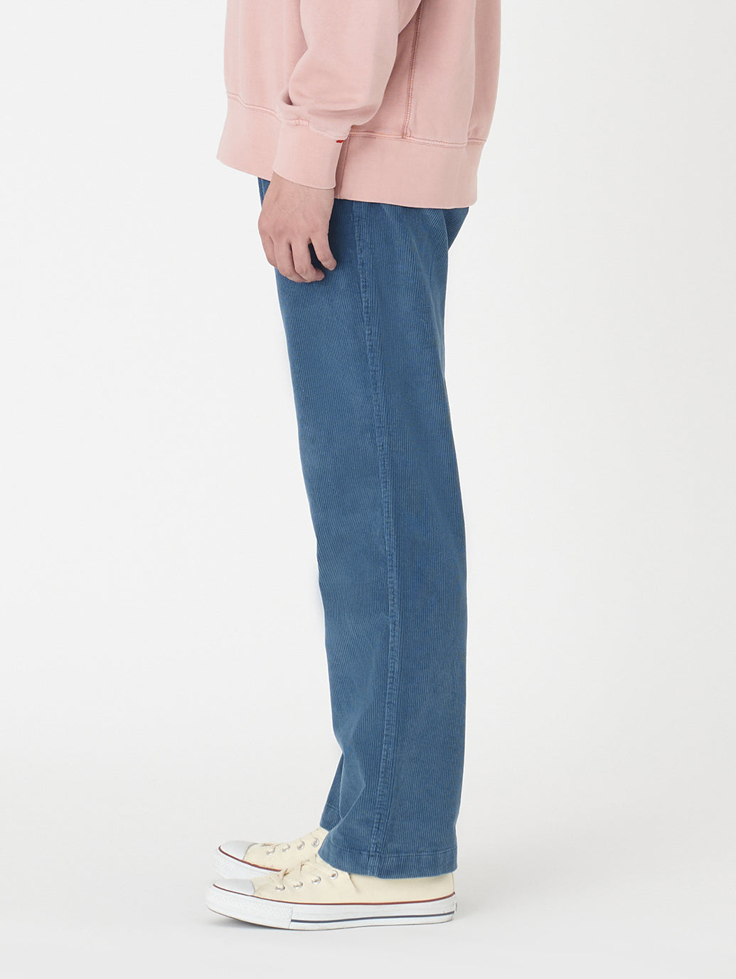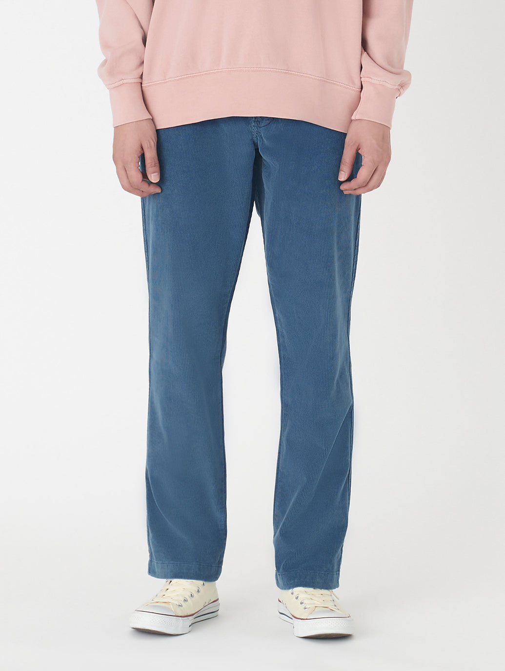 ストレートレッグのソフトなパンツで、腿にかけてきれいなレギュラーフィットスタイルです。デニムのようなアタリがついたコーデュロイはシンプルなトップスと合わせておしゃれ感が出ます。