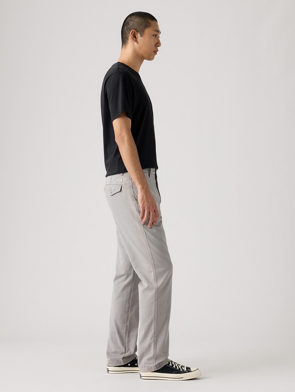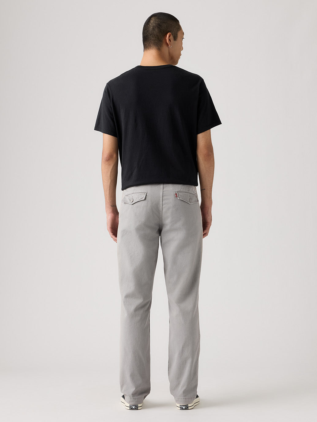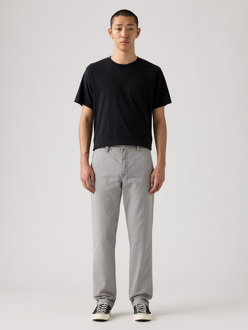 ストレートレッグのソフトなパンツで、腿にかけてきれいなレギュラーフィットスタイルです。グレーカラーでシンプルなトップスと合わせておしゃれ感が出ます。