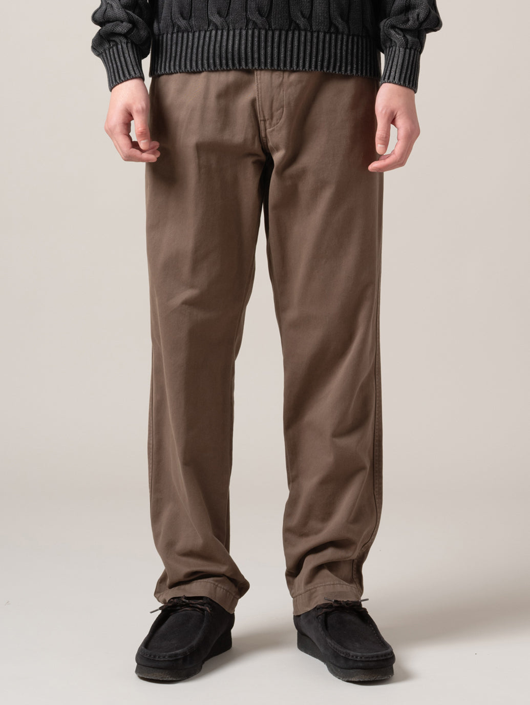 ストレートレッグのソフトなパンツで、腿にかけてきれいなレギュラーフィットスタイルです。ブラウンカラーでシンプルなトップスと合わせておしゃれ感が出ます。 model:181cm B89 W68 H83 着用サイズ:33inch