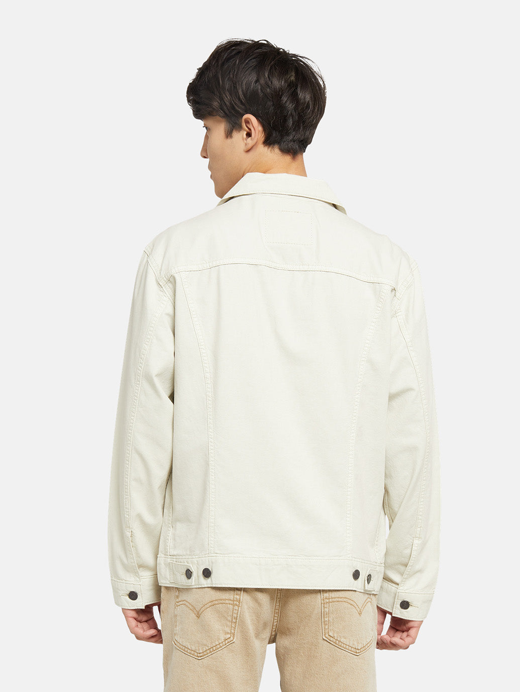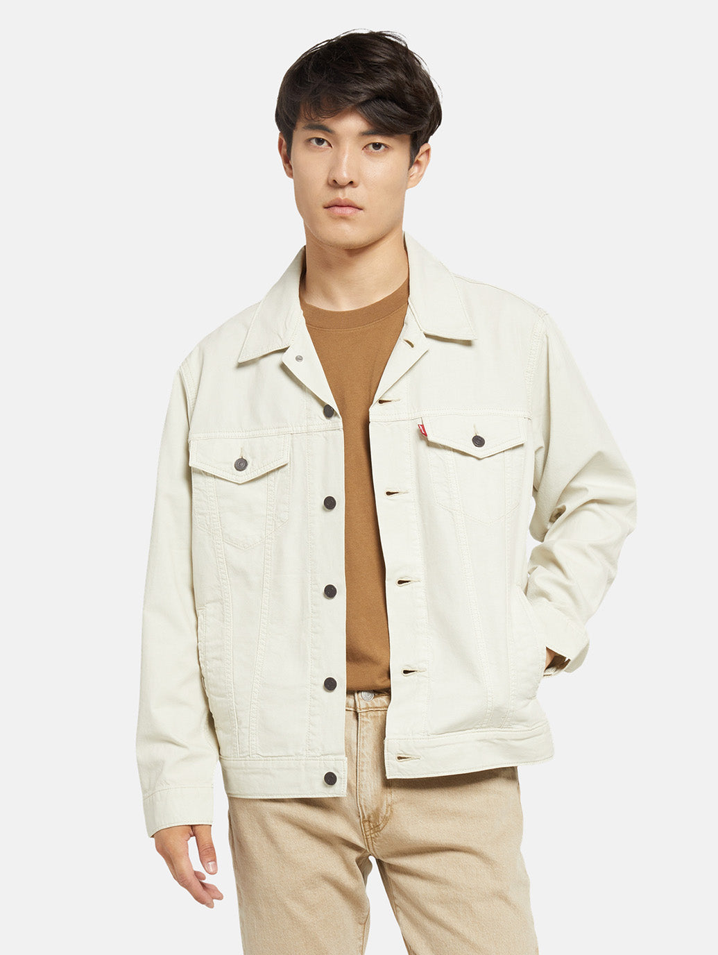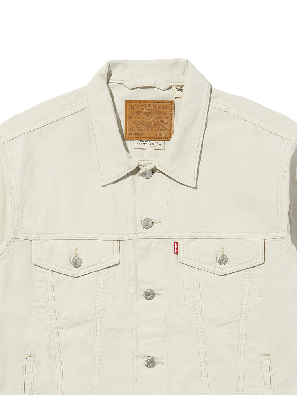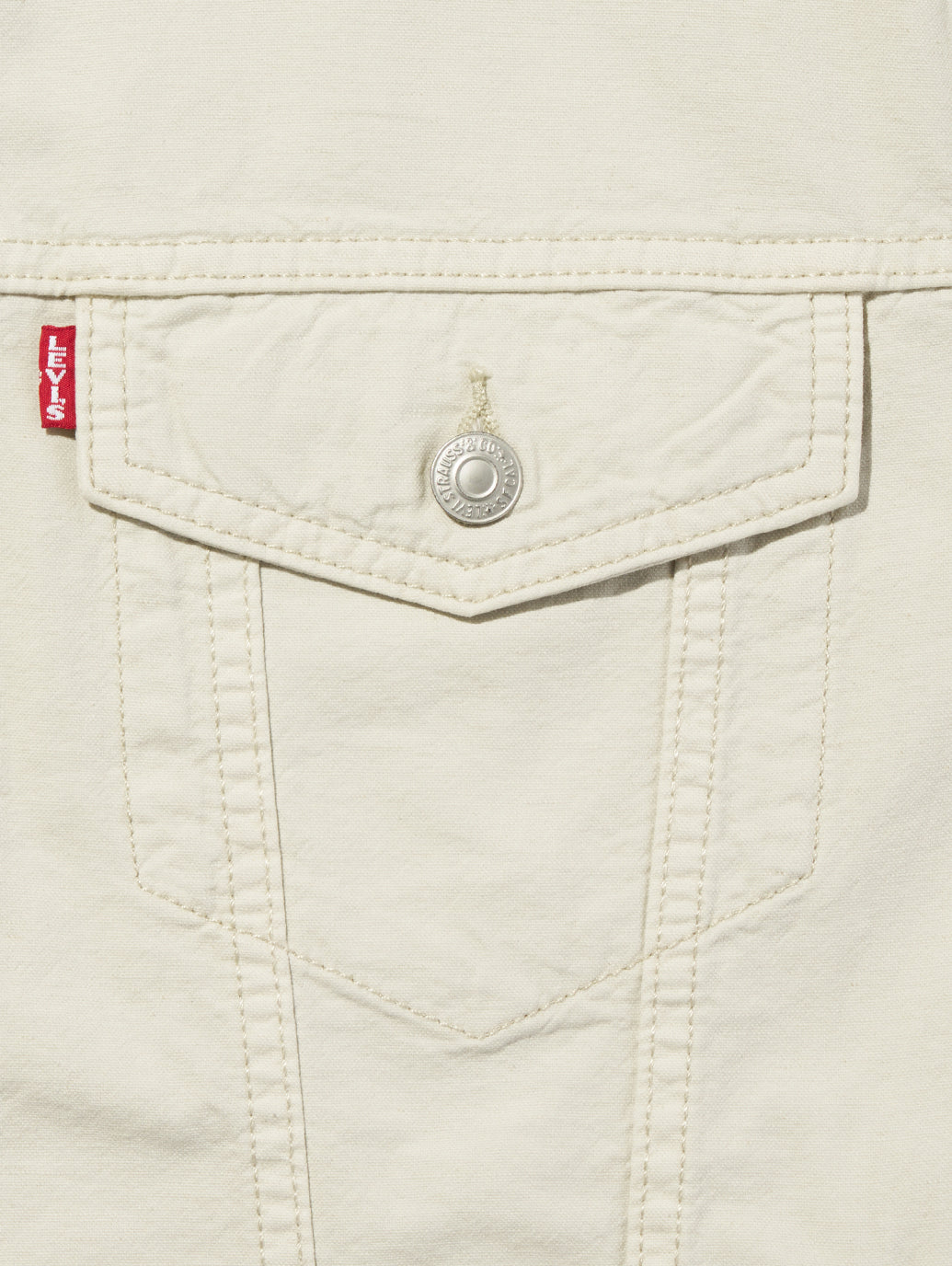 1967年から続くLevi’s®の定番アイテムの一つであるトラッカージャケット。季節や流行問わず長年着用できるようなデザイン。綿88%、麻12%の素材で通気性も良く、見た目に反して着やすいアイテム。キナリカラーのリラックスフィットでフロントに2つのポケット、両サイドにもポケットが施されているので機能性も兼ね備えている一着です。