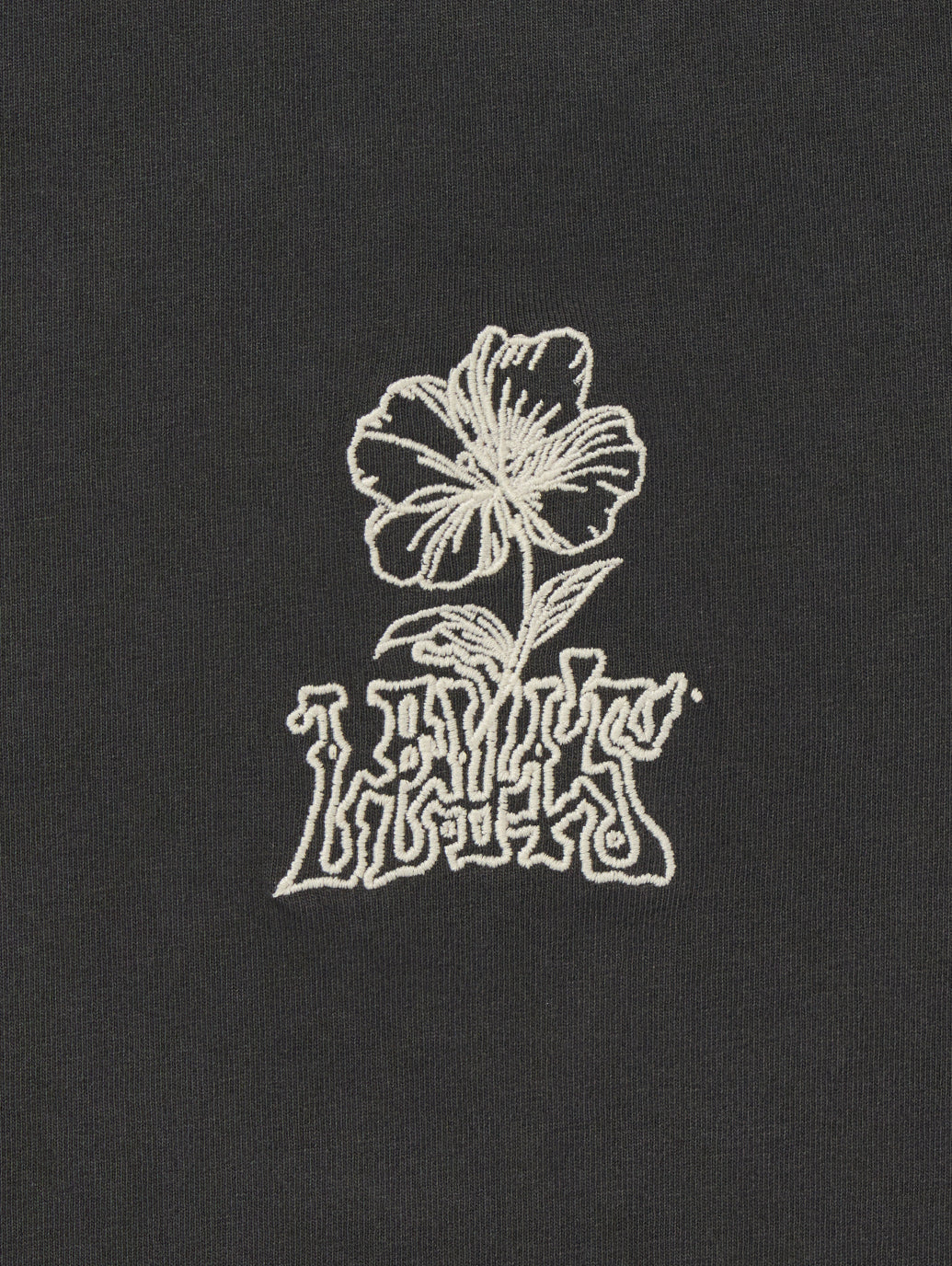 夏に大活躍するTシャツ。通常の袖の長さより少し長めに作られているのが特徴です。 ゆったりとしたフィット感でレトロな雰囲気のカラーにハイビスカスのプリントが大胆にあしらわれています。