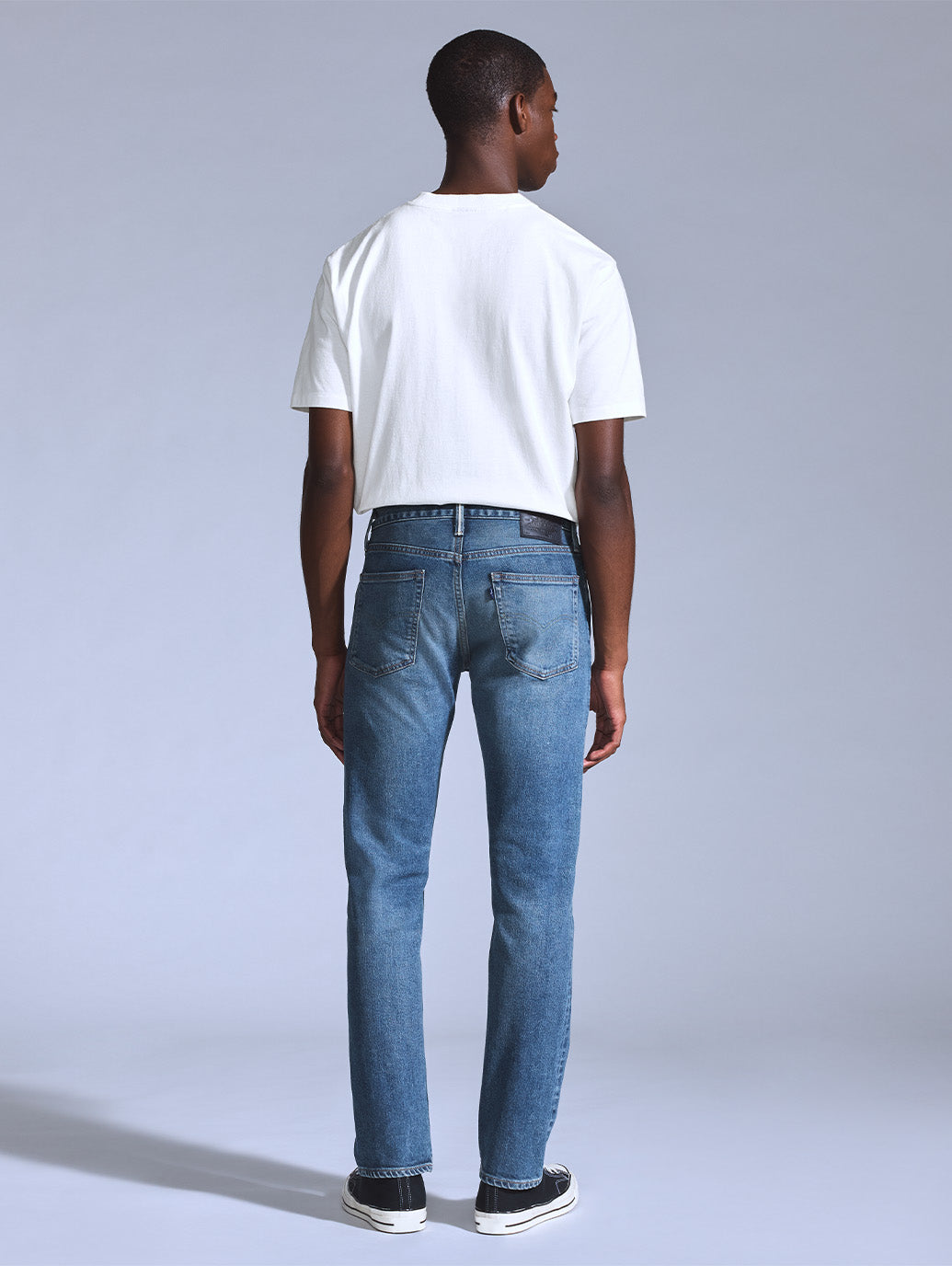 リーバイス®のベーシックシルエットの一つで、ストレートとスキニーの中間に位置するスタンダードなスリムフィット。ストレッチ入りで伸縮性のある生地、浅めの股上なので、股下から裾にかけてきれいなシルエットが出やすいのが特徴です。スリムなシルエットながら綿98%にポリウレタン2%配合しているので、耐久性は勿論、伸縮性に優れています。日本製ならではのプレミアム感も強いセルビッチ仕様、濃淡がありつつもどこか洗練された色合いが特徴の一本です。