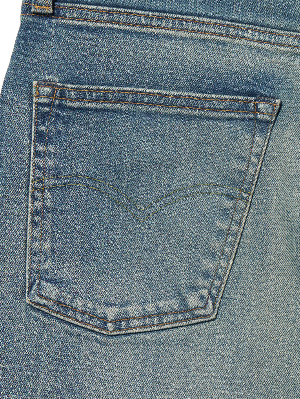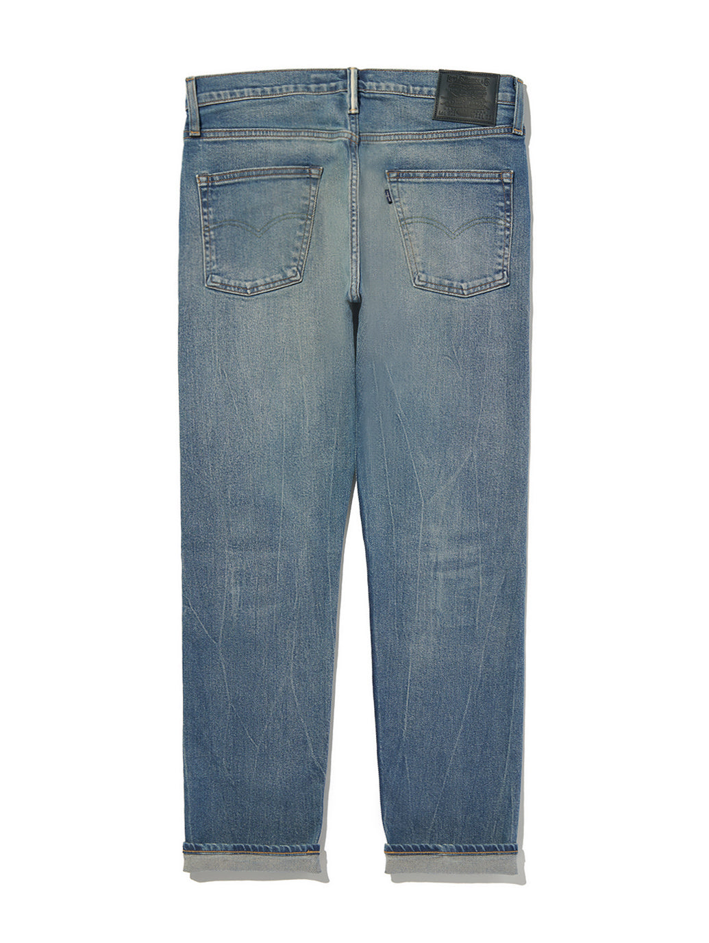リーバイス®のベーシックシルエットで、元々は1967年に東海岸のスタイリッシュな人たちに向けてつくられたという歴史を持つフィット。裾に向かって細くなるキレイめなテーパードシルエット、程よい深さの股上、伸縮性のあるストレッチ素材を配合した生地が特徴です。最高級の日本製のデニム生地を使用した濃淡がしっかりと出た色味、仕上げ、ディティールなど拘りの詰まった1本です。