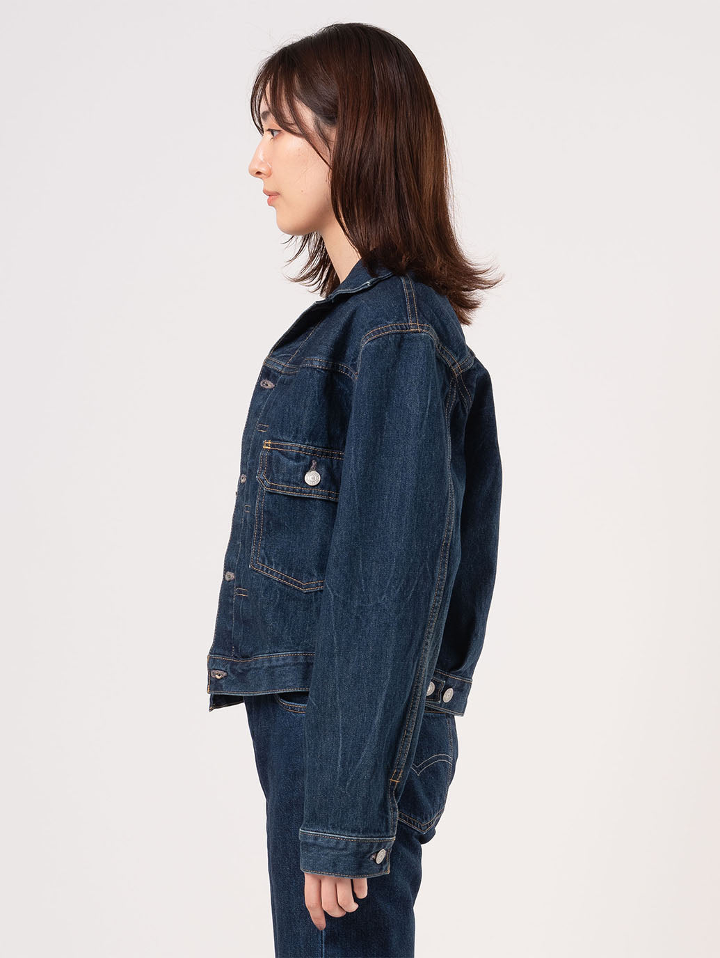このヴィンテージ風のジャケットは、ユニークなプリーツのディテールと 2 つのフラップ ポケットのデザインで知られる Type II トラッカー ジャケットがベースにデザインされました。これはオリジナルへのオマージュですが、完全に仕上げられたパイプ状のインテリア、非常にゆったりとしたフィット感、そして長めの胴体で作られた新しいフィットです。