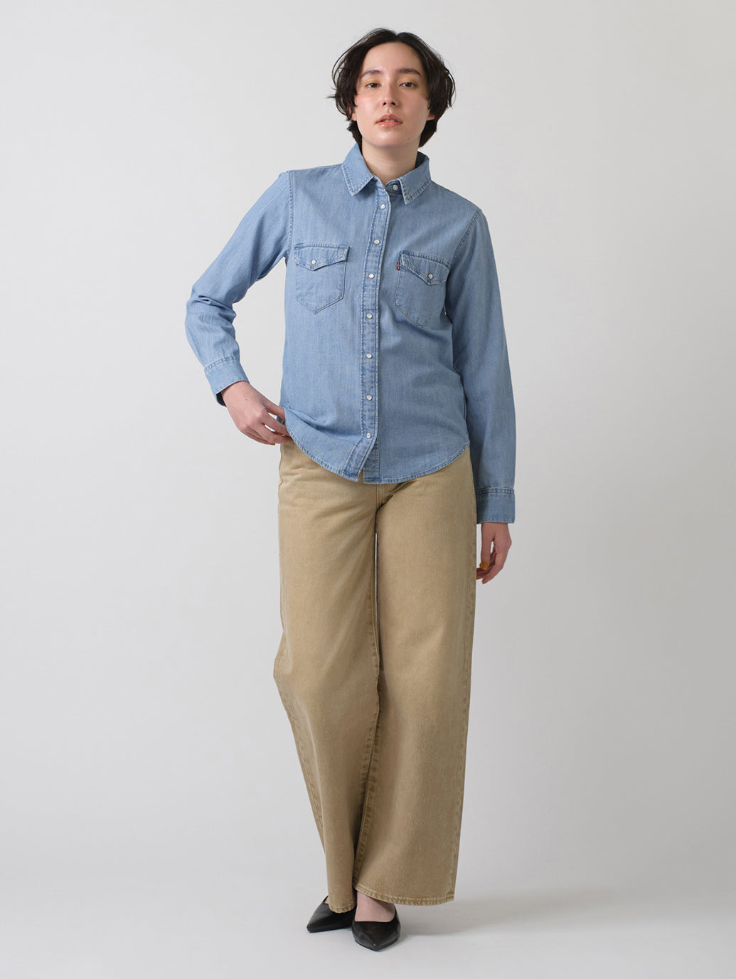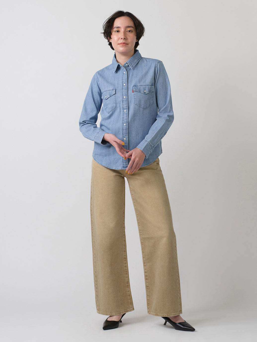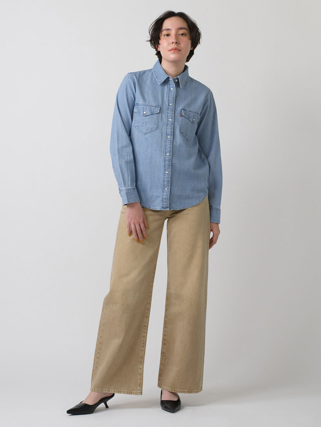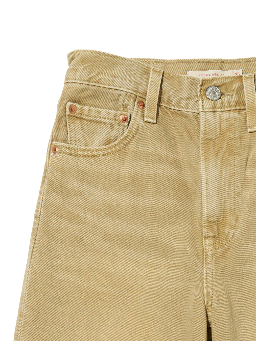人気のシルエットのRIBCAGEにトレンドのワイドレッグが登場しました。70年代の脚を長く見せるテイラー仕立てのルックと90年代風のスーパーハイライズを組み合わせた、ライズとウエストラインを強調する完璧なバランスのデザインです。驚異的な12インチライズのRIBCAGEはヒップをスリムに見せ、ウエストを強調し、脚を長く見せてくれるジーンズです。個性的なカラーをお探しの方にピッタリの一本です。